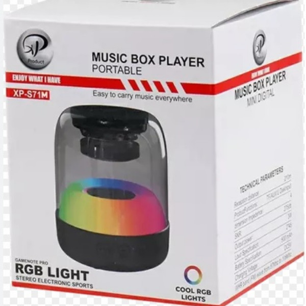 اسپیکر شارژی بلوتوثی XP-S71M n دارای RGB شیشه ای کلید پاور و تغییر حالت میباشد و بلوتوث 5.3V را پشتیبانی میکند همچنین تا 10 متر برد دارد . باطری 1200mAh میباشد که با کابل شارژ تایپ سی شارژ میشود اسپیکر دارای ورودی USB و AUX و مموری TF میباشد دارای 4 دکمه میباشد