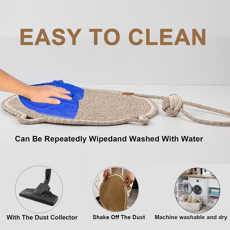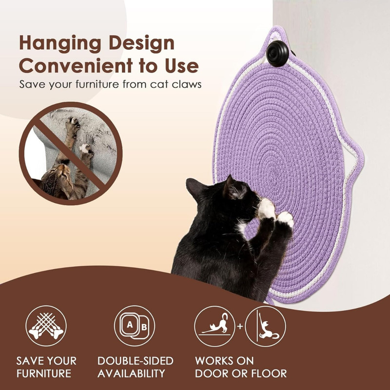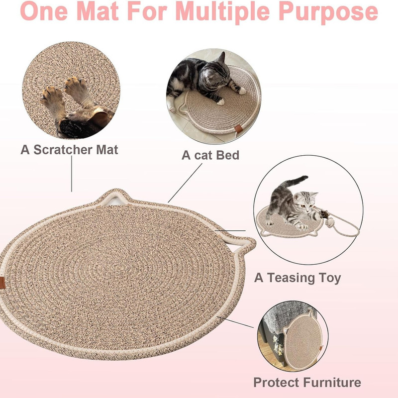 از این محصول میتوان بعنوان زیرانداز گربه و یا اسکرچر استفاده نمود. همچنین بند توپی آن سرگرمی مناسبی برای گربه دلبندتان خواهد بود. تمیز کردن این کالا بسیار راحت است، میتوان آن را جارو کشید و یا در ماشین لباسشویی شست.