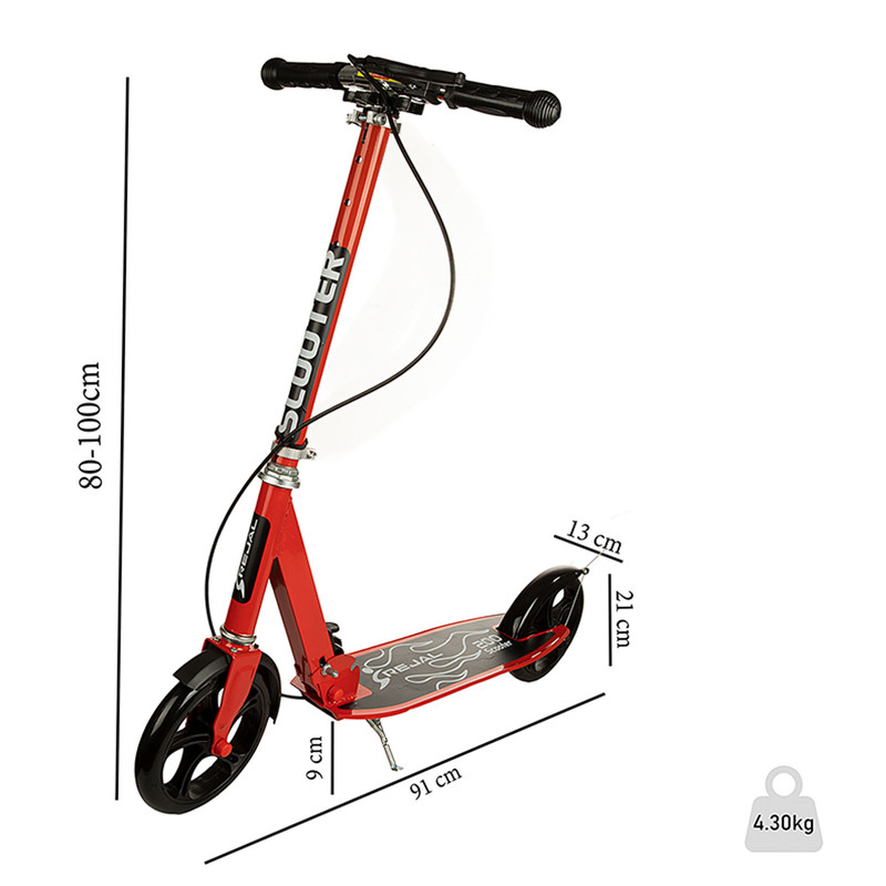 | سایر توضیحات | دارای جک فنر دار- دارای کفی ضد لغزش- دارای ضامن قفل شونده- وزن اسکوتر 4.3 کیلوگرم- وزن قابل تحمل ۹۰ کیلوگرم- مناسب جوانان و نوجوانان- مجهز به ترمز پدالی و سیمی- طول اسکوتر ۹۰ سانتی متر- عرض کفی ۱۵ سانتی متر- قابلیت تا شدن به منظور حمل آسان- جنس بدنه فلزی و مقاوم در برابر ضربه- جنس دسته ها از پلاستیک با قابلیت ضد لغزش- دارای دو چرخ با قطر ۲۰۰ میلی متر- قابلیت تنظیم ارتفاع فرمان بین 80 تا 100سانتی متر- |