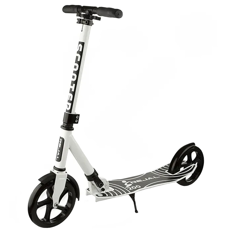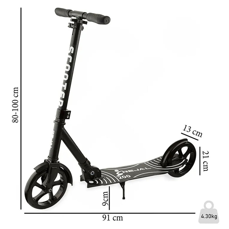 به وسیله ی اسکوتر میتوان مسافتهای کوتاه درون شهری را در مدت زمان کمی پیمود و از مسیر لذت برد. از مزایای اسکوتر استفاده ی آسان آن، دوست دار محیط زیست بودن، وزن کم و تقویت مهارت های حرکتی و ... می باشد. بدنه ی اسکوتر جوانان رجال R-200 از جنس فلز مقاوم است که دوام آن را در برابر ضربه و فشار تضمین می کند. ارتفاع فرمان در این اسکوتر بر اساس قد افراد قابل تنظیم می باشد. این ارتفاع از 80 سانتی متر تا 100 سانتی متر قابل تغییر است. دسته های فرمان این محصول، از جنس فوم و بسیار نرم و راحت می باشد که در حین اسکوتر سواری هیچ سختی و فشاری به دست ها وارد نمی کند. دارای 2 عدد چرخ ژله ای و بسیار روان با قطر 21 سانتی متر می باشد. ترمز در این اسکوتر به صورت پدالی است که روی چرخ عقب قرار دارد. این اسکوتر از نوع تاشو می باشد که حمل و جا به جایی آن را بسیار راحت می کند. گیره های نگه دارنده ی بطری و وسایل، از دیگر تجهیزات موجود بر روی این اسکوتر است. به علاوه داشتن جک یک مزیت بزرگ برای این اسکوتر به حساب می آید تا هنگام پارک کردن به دنبال تکیه گاه نباشید. وزن این اسکوتر 4.30 کیلوگرم می باشد.