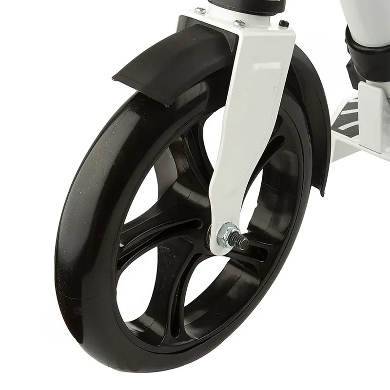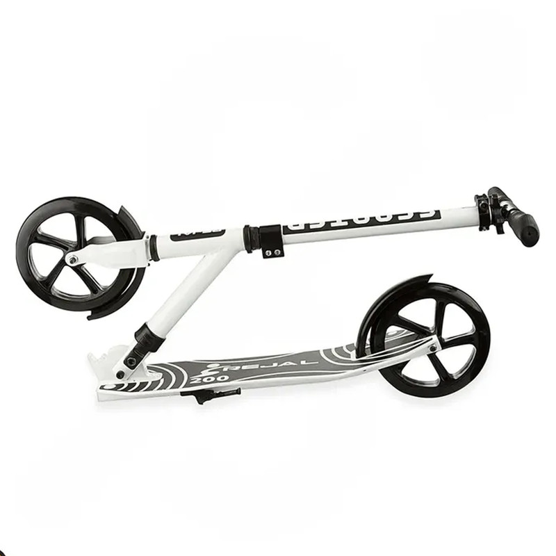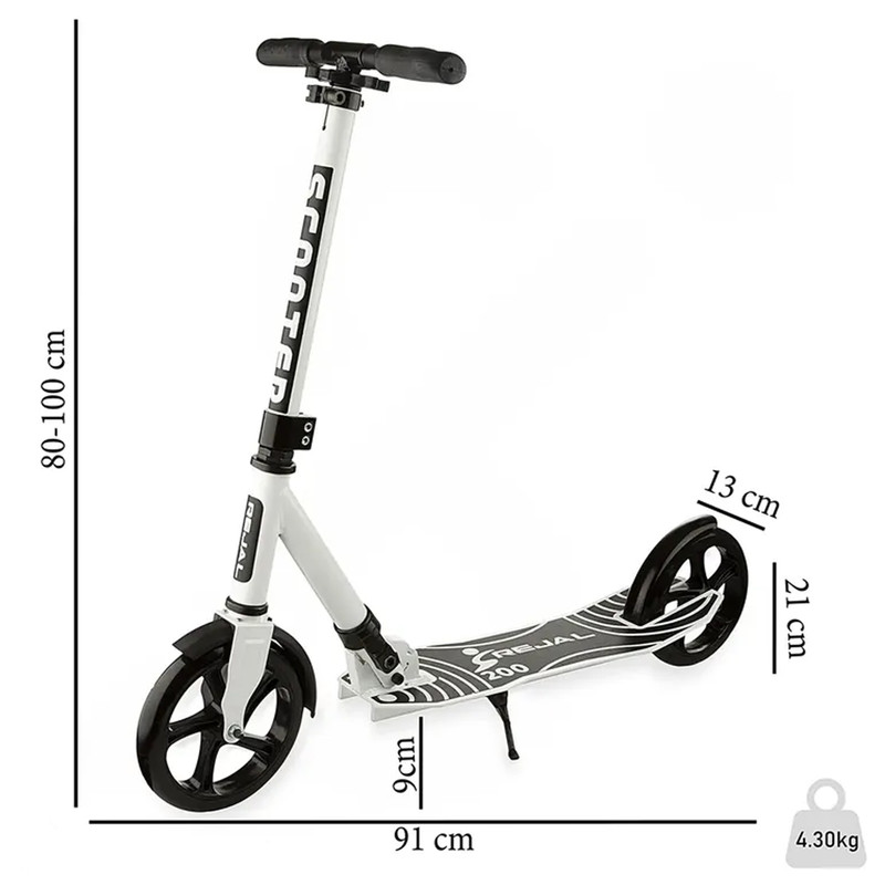به وسیله ی اسکوتر میتوان مسافتهای کوتاه درون شهری را در مدت زمان کمی پیمود و از مسیر لذت برد. از مزایای اسکوتر استفاده ی آسان آن، دوست دار محیط زیست بودن، وزن کم و تقویت مهارت های حرکتی و ... می باشد. بدنه ی اسکوتر جوانان رجال R-200 از جنس فلز مقاوم است که دوام آن را در برابر ضربه و فشار تضمین می کند. ارتفاع فرمان در این اسکوتر بر اساس قد افراد قابل تنظیم می باشد. این ارتفاع از 80 سانتی متر تا 100 سانتی متر قابل تغییر است. دسته های فرمان این محصول، از جنس فوم و بسیار نرم و راحت می باشد که در حین اسکوتر سواری هیچ سختی و فشاری به دست ها وارد نمی کند. دارای 2 عدد چرخ ژله ای و بسیار روان با قطر 21 سانتی متر می باشد. ترمز در این اسکوتر به صورت پدالی است که روی چرخ عقب قرار دارد. این اسکوتر از نوع تاشو می باشد که حمل و جا به جایی آن را بسیار راحت می کند. گیره های نگه دارنده ی بطری و وسایل، از دیگر تجهیزات موجود بر روی این اسکوتر است. به علاوه داشتن جک یک مزیت بزرگ برای این اسکوتر به حساب می آید تا هنگام پارک کردن به دنبال تکیه گاه نباشید. وزن این اسکوتر 4.30 کیلوگرم می باشد.