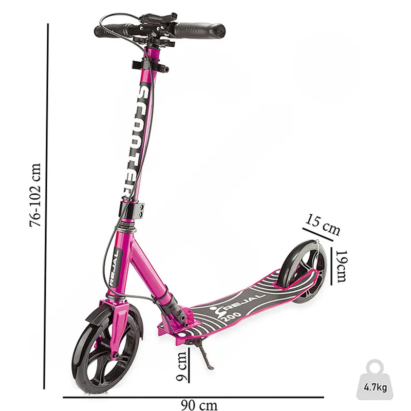 اسکوترها فقط یک اسباب بازی سرگرم کننده در فضای باز نیستند، بلکه می توانند فعالیت بدنی، هماهنگی و اعتماد به نفس بالایی را برای افراد به ارمغان بیاورند. اسکوتر رجال مدل R-200Tمناسب برای جوانان و نوجونان می باشد و با طراحی منحصر به فرد و جذاب خود، نظر هر بیننده ای را به خود جلب می کند. بدنه ی فلزی این اسکوتر باعث دوام و مقاومت بالای آن در برابر ضربه شده است. این محصول دارای دستگیره های ارگونومیک با روکش پلاستیکی می باشد که راحتی بیشتری را در حین گشت و گذار برای شما فراهم می کند. فرمان اسکوتر رجال، قابلیت تنظیم در سه ارتفاع مختلف مطابق با قد کاربر را دارد که امکان استفاده از آن را برای اشخاص مختلف فراهم می کند. در زیر فرمان دو عدد گیره به منظور آویزان کردن و حمل وسایل تعبیه شده است. چرخ ها از نوع ژله ای با قطر 200 میلی متر می باشند که با ایجاد یک سواری نرم و ایمن، لذت استفاده از این اسکوتر را حتی در زمین های ناهموار هم چند برابر می کنند. به منظور جلوگیری از لغزش فرد و ایجاد تعادل، کفی اسکوتر به یک برچسب ضد لغزش مجهز شده است. در طراحی این محصول از دو نوع ترمز پدالی و سیمی استفاده شده که توقف سریع و ایمنی را به وجود می آورند. جک فنر دار این اسکوتر، پارک کردن آن را راحت کرده و از افتادن و آسیب رسیدن به اسکوتر جلوگیری می کند. اسکوتر جوانان رجال مدل R-200T ، دارای یک مکانیسم تاشو برای حمل و نقل راحت است. طول این اسکوتر 90 و ارتفاع آن 76-102 سانتیمتر و وزن آن 4.7 کیلوگرم می باشد.