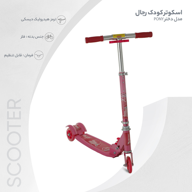 | سایر توضیحات | - دارای تنظیم ارتفاع فرمان در سه حالت - با قابلیت تا شدن برای حمل آسان - سایز 90 - دارای کمک فنر - دارای زنگ - دارای ترمز دستی - دارای گل پیچ - دارای بند حمل |