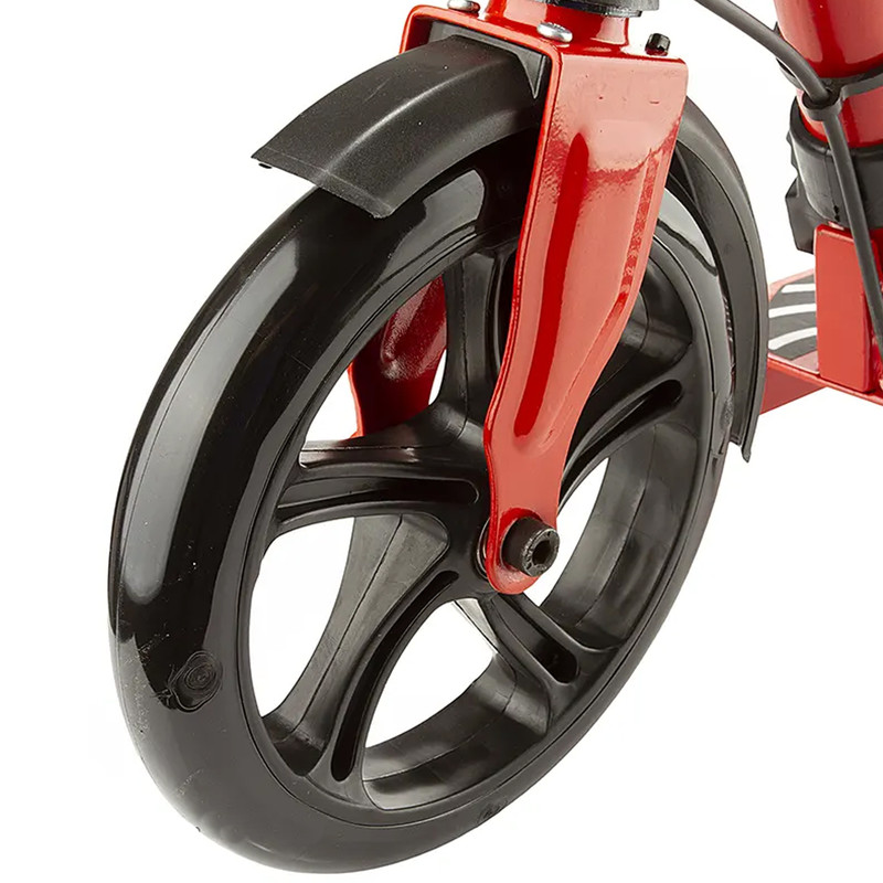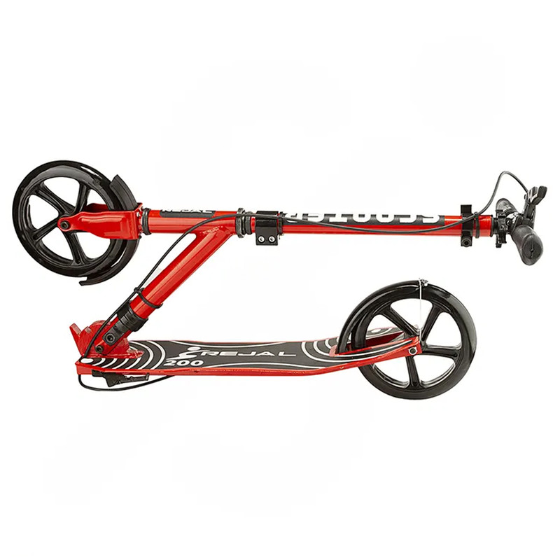 اسکوترها فقط یک اسباب بازی سرگرم کننده در فضای باز نیستند، بلکه می توانند فعالیت بدنی، هماهنگی و اعتماد به نفس بالایی را برای افراد به ارمغان بیاورند. اسکوتر رجال مدل R-200Tمناسب برای جوانان و نوجونان می باشد و با طراحی منحصر به فرد و جذاب خود، نظر هر بیننده ای را به خود جلب می کند. بدنه ی فلزی این اسکوتر باعث دوام و مقاومت بالای آن در برابر ضربه شده است. این محصول دارای دستگیره های ارگونومیک با روکش پلاستیکی می باشد که راحتی بیشتری را در حین گشت و گذار برای شما فراهم می کند. فرمان اسکوتر رجال، قابلیت تنظیم در سه ارتفاع مختلف مطابق با قد کاربر را دارد که امکان استفاده از آن را برای اشخاص مختلف فراهم می کند. در زیر فرمان دو عدد گیره به منظور آویزان کردن و حمل وسایل تعبیه شده است. چرخ ها از نوع ژله ای با قطر 200 میلی متر می باشند که با ایجاد یک سواری نرم و ایمن، لذت استفاده از این اسکوتر را حتی در زمین های ناهموار هم چند برابر می کنند. به منظور جلوگیری از لغزش فرد و ایجاد تعادل، کفی اسکوتر به یک برچسب ضد لغزش مجهز شده است. در طراحی این محصول از دو نوع ترمز پدالی و سیمی استفاده شده که توقف سریع و ایمنی را به وجود می آورند. جک فنر دار این اسکوتر، پارک کردن آن را راحت کرده و از افتادن و آسیب رسیدن به اسکوتر جلوگیری می کند. اسکوتر جوانان رجال مدل R-200T ، دارای یک مکانیسم تاشو برای حمل و نقل راحت است. طول این اسکوتر 90 و ارتفاع آن 76-102 سانتیمتر و وزن آن 4.7 کیلوگرم می باشد.