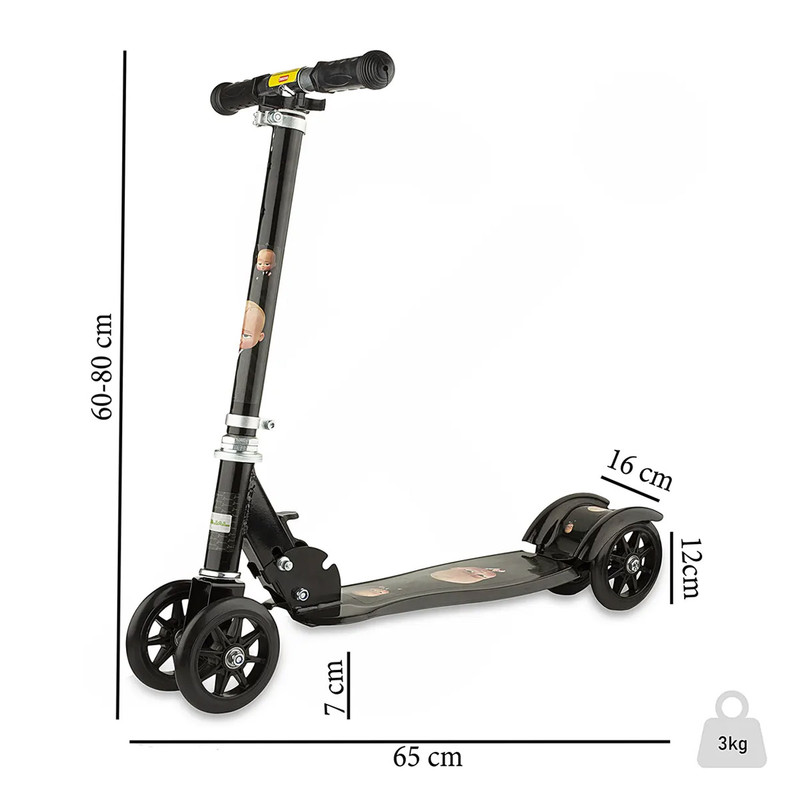 | سایر توضیحات | رنگ بندی متنوع- دارای ضامن قفل شونده- طول اسکوتر 65 سانتی متر- مجهز به چرخ های ژله ای- مناسب کودکان7 تا 12سال- جنس دستگیره ها از پلاستیک- جنس بدنه از فلز محکم و مقاوم- قابلیت تا شدن به منظور حمل آسان- دارای ترمز پدالی در روی چرخ عقب- دارای 2 چرخ جلو و 2 چرخ در عقب- ارتفاع فرمان 60 تا 80 سانتی متر در سه حالت قابلیت تنظیم- |