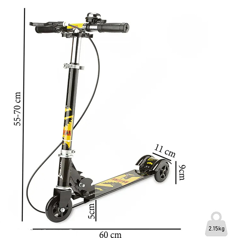 | سایر توضیحات | دارای زنگ هشدار- جنس بدنه از فلز مقاوم- دارای ضامن قفل شونده- وزن اسکوتر 2150 گرم- قطر چرخ ها 90 میلی متر- مناسب رده سنی 3 تا 7 سال- قابلیت تا شدن به منظور حمل آسان- دارای رنگ بندی و طرح های متنوع- دارای 1 چرخ جلو و 2 چرخ در عقب- دسته ها از پلاستیک نرم و ضد لغزش- قابلیت تنظیم ارتفاع بین 55 تا 70 سانتی متر- دارای ترمز دستی سیمی در جلو و ترمز پدالی بر روی چرخ عقب- |