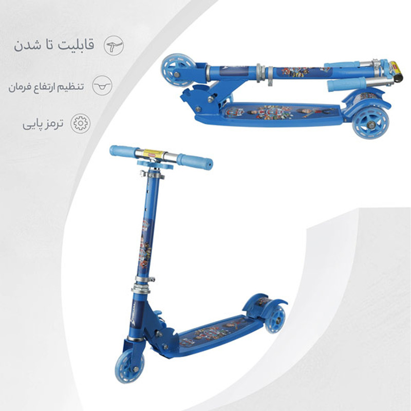 اسکوتر رجال امروزه طرحبندیهای مختلفی از محصولات خود را متناسب با سلایق کودکان شما عرضه کرده است. طرح سگ نگهبان نیز یکی از طرحهای کارتونی جدید بوده که موردپسند کودکان شما است. اسکوتر کودک طرح سگهای نگهبان مناسب رده سنی 3 تا 7 سال خواهد بود. این محصول دارای فرمان قابل تنظیم در 3 حالت مختلف بوده که بسته به قد فرزند شما تنظیم خواهد شد. همچنین با استفاده از اهرم مخصوص قابلیت تا شوندگی خواهد داشت که حمل آن را بسیار آسان کرده است. جنس چرخ اسکوتر ژلهای بوده لذا حس نرمی خوبی هنگام حرکت دارد. قطر چرخ این محصول نیز 90 میلیمتر خواهد بود. لازم به ذکر است کودک شما میتواند با استفاده از یک ترمز پدالی روی چرخ عقب سرعت خود را نیز کم کند. جنس بدنه آن از فلز بوده و آستانه تحمل وزن آن نیز تا 40 کیلوگرم خواهد بود.