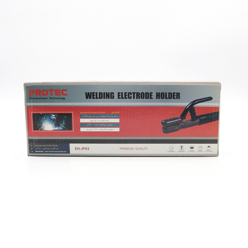 سایر توضیحات- انبر الکترود جوشکاری پروتک - مخصوص جوشکاری با شدت 500 امپر - قابلیت تحمل جریان تا 500 آمپر - بدنه ساخته شده از فلز مقاوم - دارای پوشش بدنه مقاوم از جنس فیبر نسوز ( باکالیت ) - مخصوص الکترود های 2.5 تا 8 میلیمتر - دارای فنر قوی و فک مسی - دارای بدنه‌ی کاملا عایق با مقاومت بالا در برابر حرارت