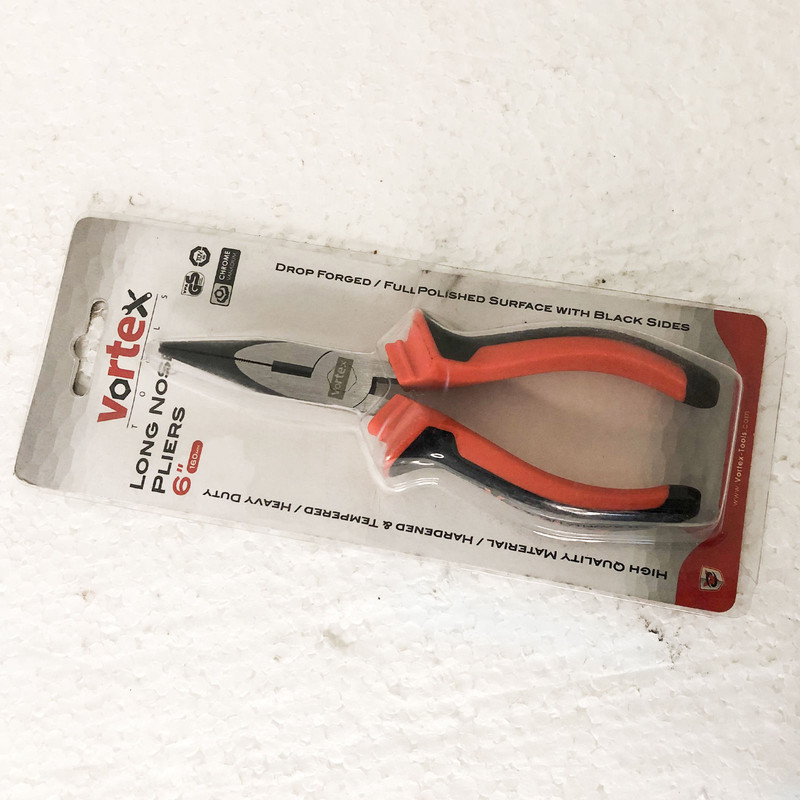 انبر دم باریک ورتکس کد VTXSR0066 سایز 6 اینچ : انبر دمباریک یکی از پرمصرفترین انبرها جهت کار بر روی قطعه کارهای دور از دسترس، جا زدن فیشها، قطع نمودن سیمها و غیره است.« انبر دم باریک ورتکس سایز 6 اینچ » دارای بدنه تقویت شده هست تا عمر آن آفزایش یابد. مهمترین معیار در خرید دمباریک، باریک بودن نوک آن به نحوی که بتواند قطعه کارهای ریز را بگیرد است. به دلیل پرداخت فکهای این دمباریک توسط دستگاههای اتومات سیانسی، این دمباریک براحتی قطعه کار را میگیرد و قطعه کارهای ریز در آن سر نمیخورند. این انبر دمباریک یکی از حرفهایترین و با دوامترین انبر دمباریکهای موجود در بازار هست. آلیاژ بدنه از جنس کروم وانادیوم، یکی از سختترین آلیاژهای صنعتی است تا دندانههای فکها هنگام فشار، له و ساییده نشوند. روکش این انبر پولیش خورده صنعتی هست. این انبر دسته دو رنگ و خوشدست و ضد لغزش دارد تا از لغزش و سرخوردن دست هنگام کار با این انبر جلوگیری شود.