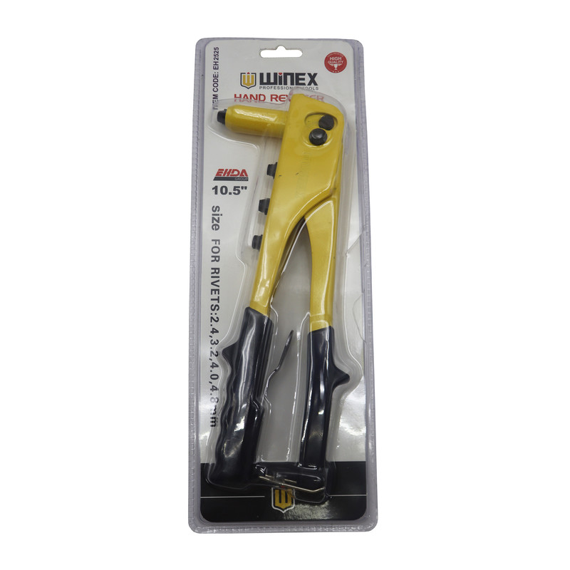 سایر توضیحات- انبر پرچ وینکس - سایز : 10.5 اینچ - دارای دسته‌ای از جنس فلز با روکش پلاستیک - ابعاد بسته‌بندی: طول 34، عرض 12 و ضخامت 4 سانتی‌متر - وزن بسته‌بندی: 560 گرم - مناسب برای پرچ کردن چوب - ام دی اف - آهن - آلومینیوم - ورق - پلاستیک و ... - دارای ۴ سری در سایزهای: - ۲.۴ میلی‌متر - ۳.۲ میلی‌متر - ۴ میلی‌متر - ۴.۸ میلی‌متر - کیفیت بالا