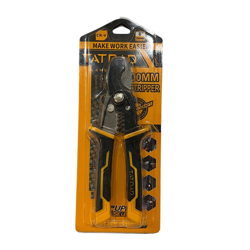 انبر کابل بر تات یکی از پر کاربرد ترین ابزار برای برق کارها است که به راحتی میتوانند تمامی کابل ها وسیم هارا در کمترین زمان قطع کنن.کاربرد اصلی کابل بر هم در برش سیم و کابل است.محصول فوق که در بردارنده لبه های تیز برای برش سیم و کابل است با طراحی فوق العاده اش سبب شده تا هیچ وسیله ای برای برش و لخت کردن روکش سیم و کابل قابل قیاس با آن نباشد.تنها با یکبار استفاده از این سیم چین خواهید فهمید که برش سیم و کابل های قطور هم آنچنان سخت و نیازمند به قدرت بالا نیست.