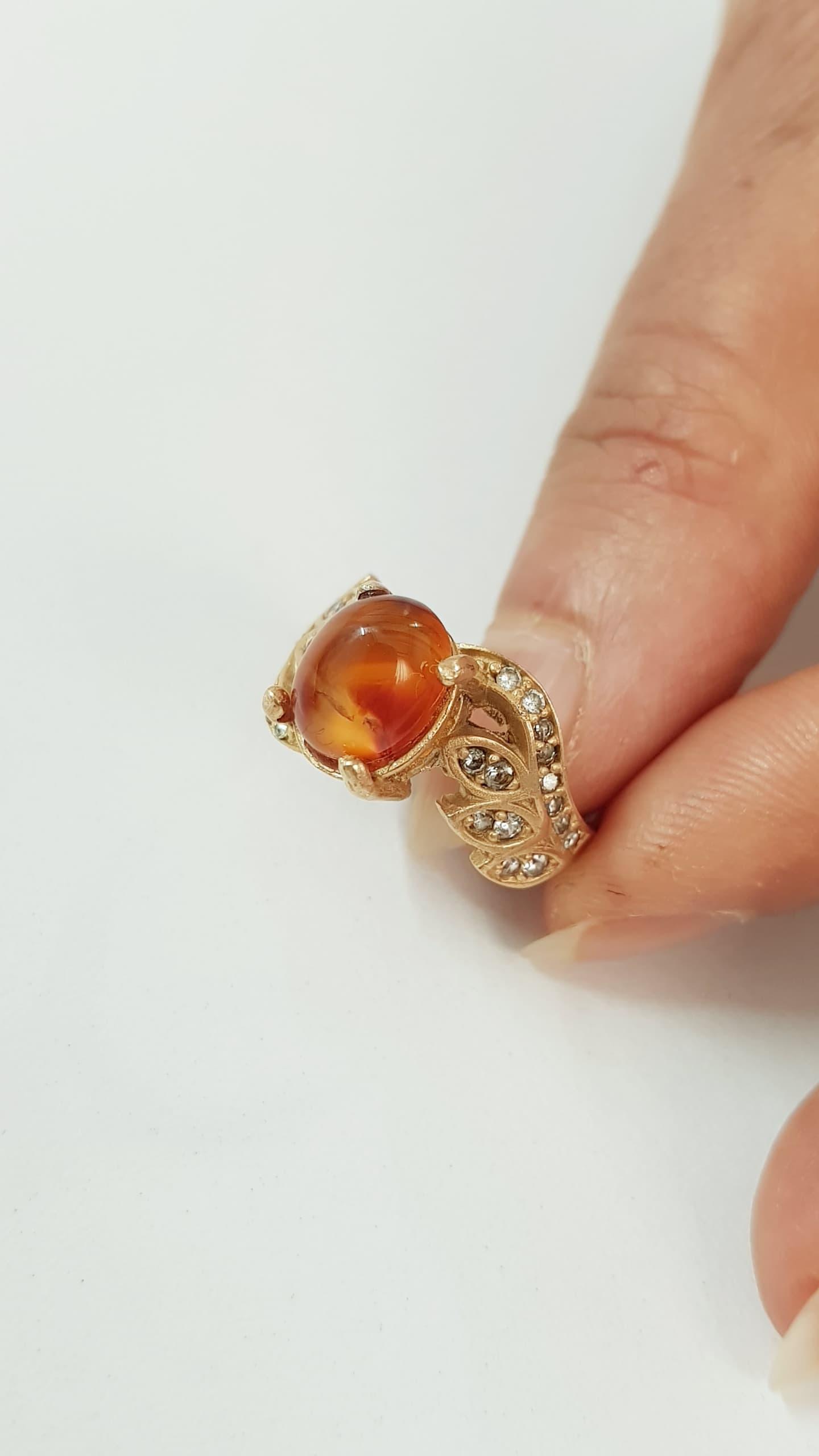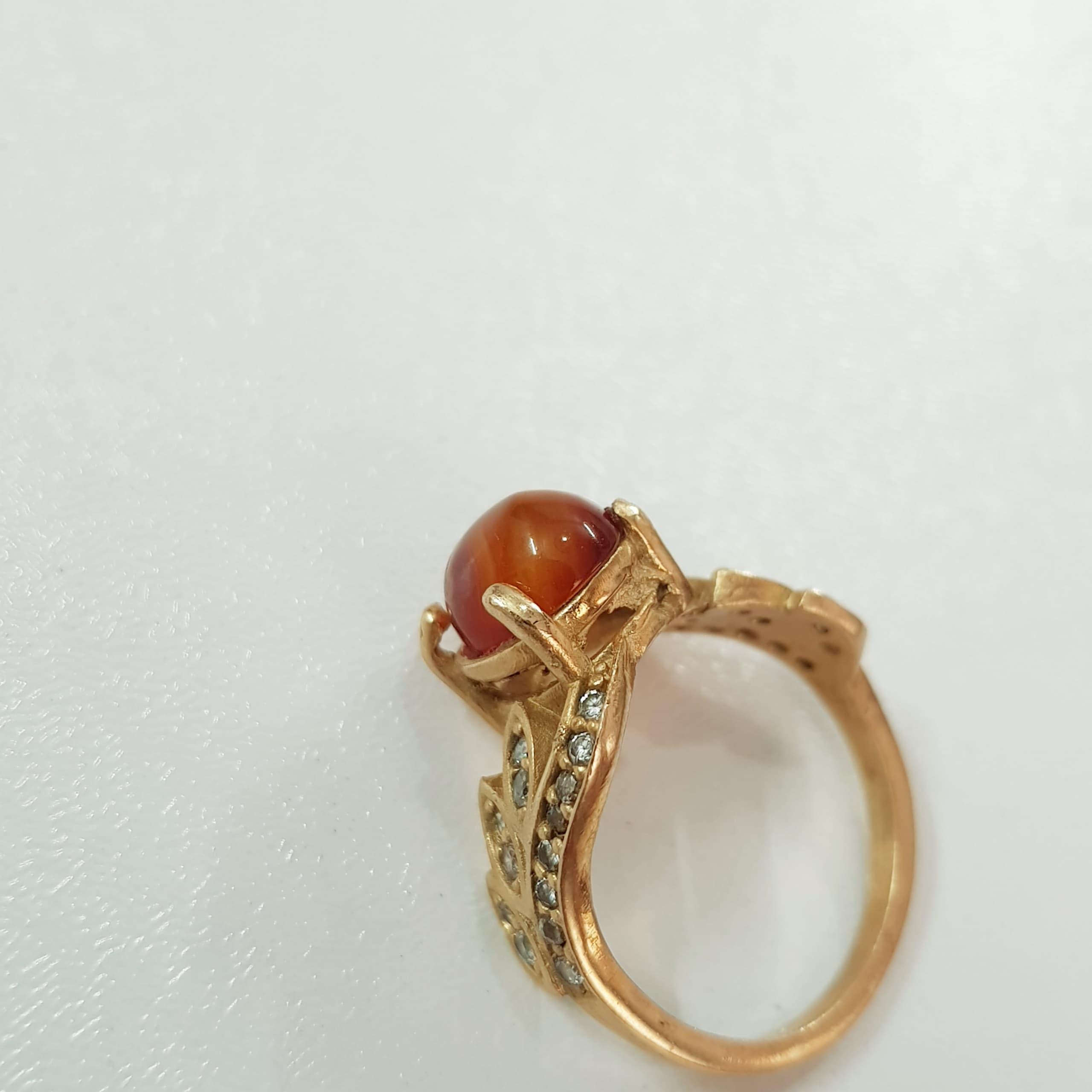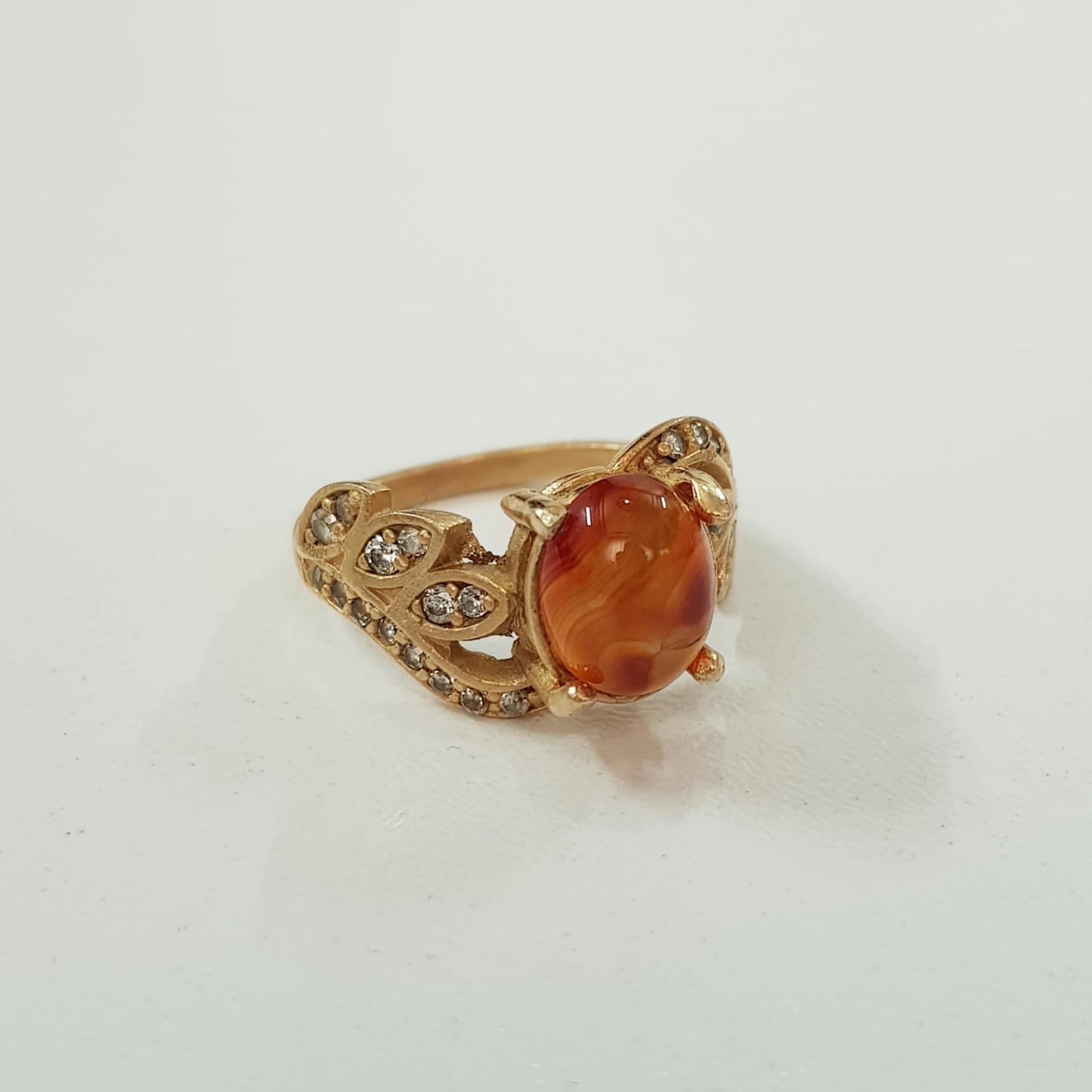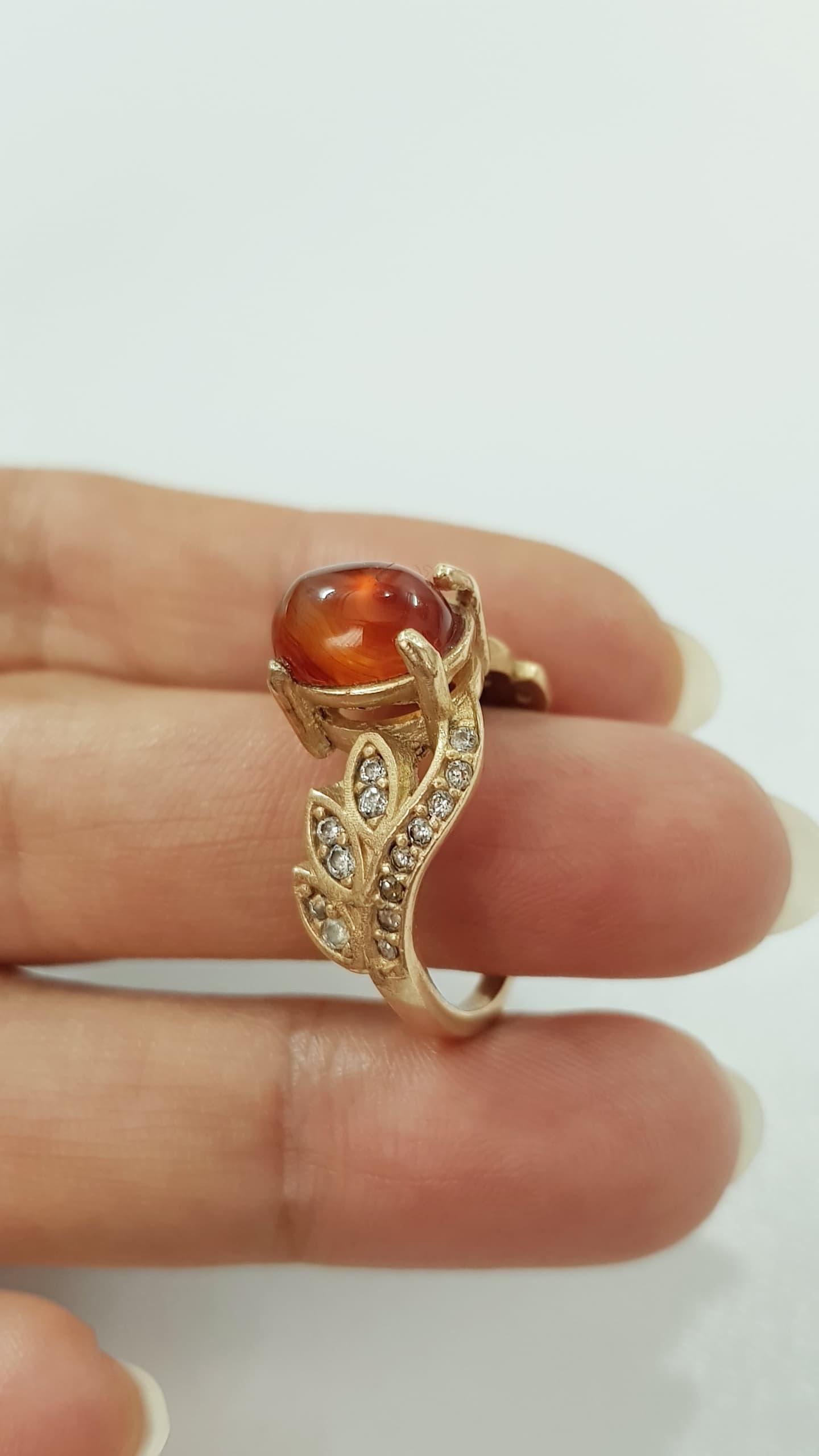انگشتر طلاروس کار شده با سنگ عقیق اصل ، کار فوقالعاده زیبا و درخشان ، سایز ۱۰-۹ ضد حساسیت