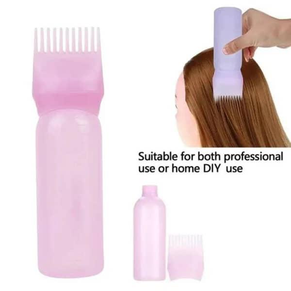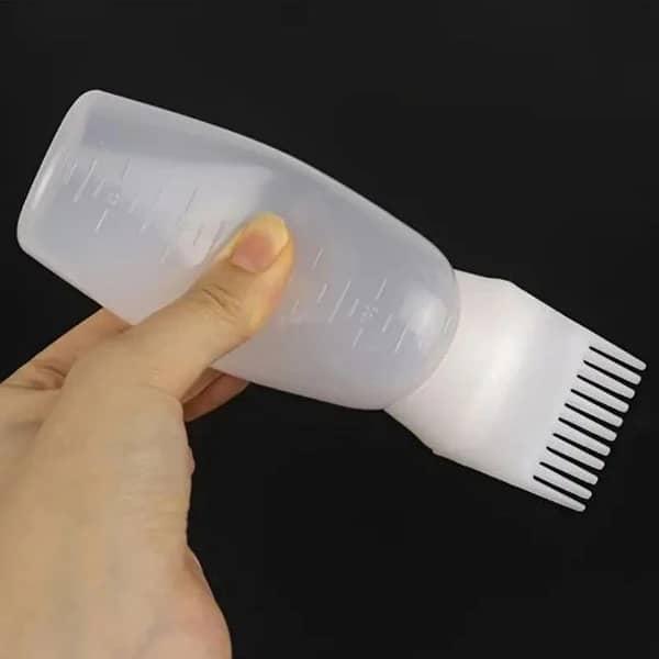 درب بطری اپلیکاتور شانه مو مانند یک شانه طراحی شده است. اپلیکاتور روغن راحتی زیادی برای رنگ کردن موهای خود در خانه برای شما فراهم می کند و نیازی به نگرانی در مورد هدر رفتن رنگ ندارد. فقط کافیست رنگ مو را داخل بطری اپلیکاتور مو بریزید، بطری اپلیکاتور را به چپ و راست تکان دهید تا رنگ یکنواخت شود، سپس بطری رنگ مو را فشار دهید تا رنگ جریان پیدا کند. از طریق شانه موها را به طور مساوی شانه کنید. (هنگام استفاده از اپلیکاتور شانه ریشه دستکش بپوشید تا از کثیف شدن دستهایتان جلوگیری شود) اپلیکاتور بطری روغن مو را میتوان در موارد زیادی استفاده کرد