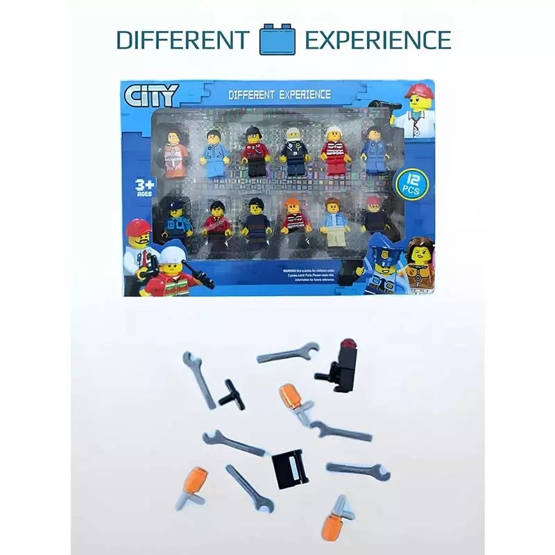 | اقلام همراه | 12 عدد فیگور لگویی از مجموعه سیتی ، متعلقات کاراکتر ها مانند آچار و ابزار |
