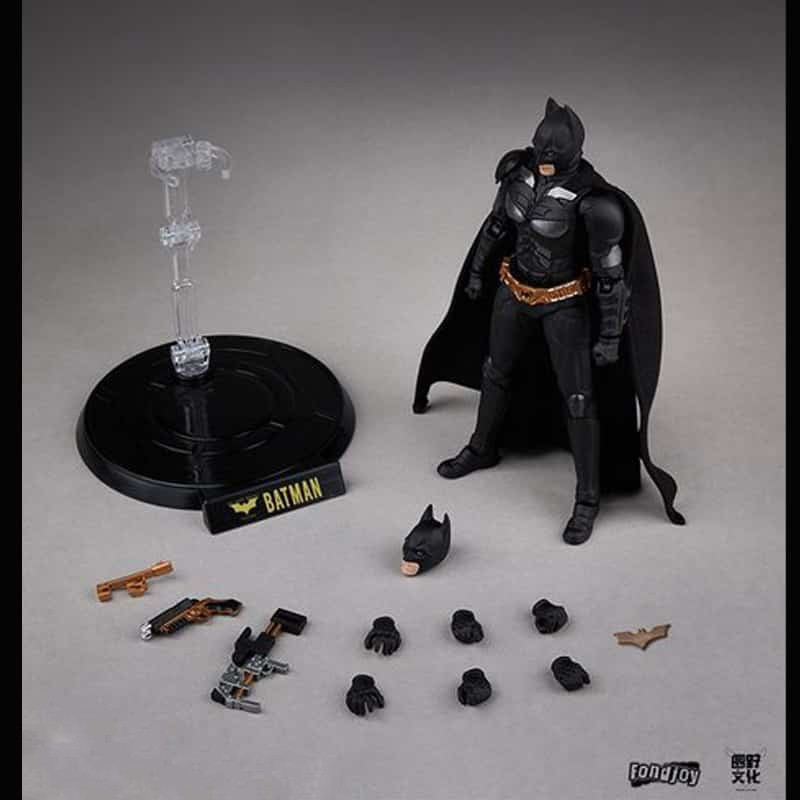 | اقلام همراه | 2 سلاح بتمن, اکشن فیگور بتمن, شش دست اضافه, نگه دارنده | Holder, یک سر اضافه, یک عدد بترنگ |