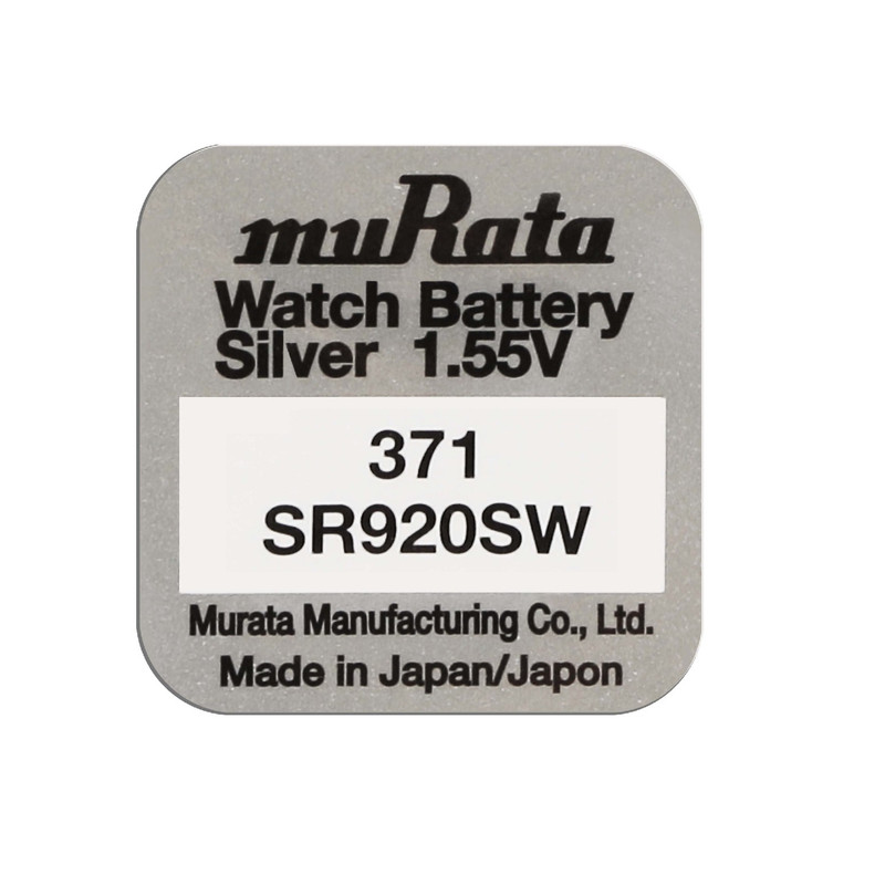 | سایر توضیحات | کاربردهای باتری موراتا 371: پمپ انسولین، ساعت، ماشین حساب، دماسنج بالینی الکترونیکی، کنترل از راه دور، سیستمهای بازی قابل حمل، کنترل از راه دور خودروهای بدون کلید، رادیو، چراغهای دوچرخه، سیستمهای GPS قابل حمل/رایانههای دوچرخه، کامپیوتر/تجهیزات ارتباطی، دوربینها و بسیاری دیگر. |