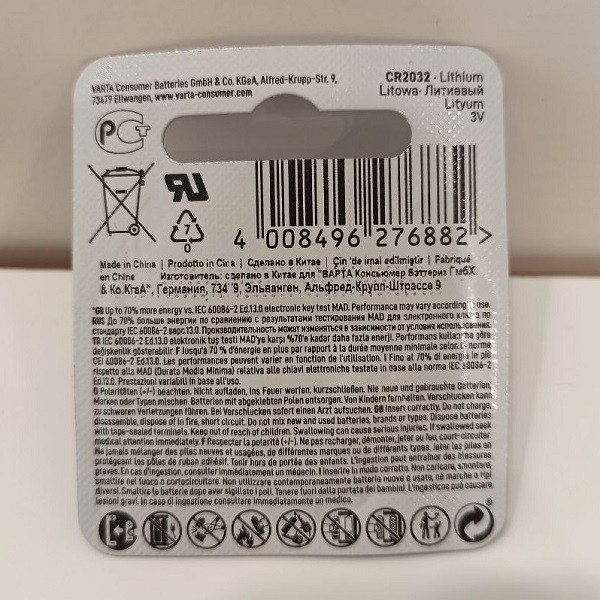 باتری سکه ای وارتا (VARTA) ساخت آلمان مدل CR2032 یکی از پرکابردترین باتری های سکه ای است که برای تجهیزات الکترونیکی گوناگون کاربرد دارد. دستگاه سنجش قند خون، انواع ریموت کنترل، ساعت مچی و بسیاری دیگر از دستگاه های دیجیتالی و الکترونیکی با استفاده از باتری سکه ای وارتا CR2032 تغذیه می شوند.