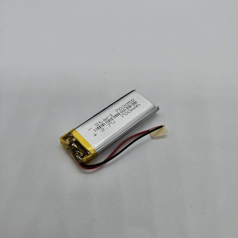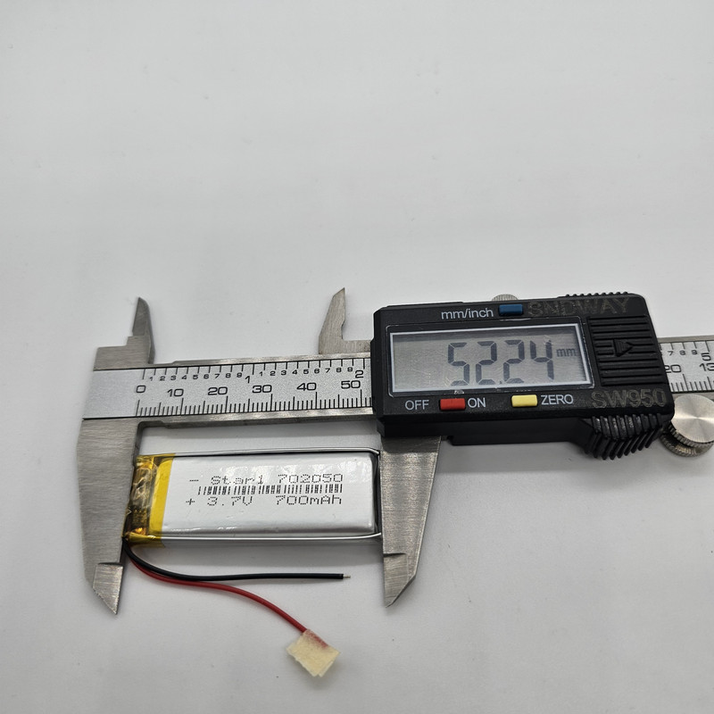 باتری لیتیومی 3.7 ولت استاروان مدل 702050 ابعاد 52×20×7 میلی متر ظرفیت 700 میلی آمپر دارای برد محافظ دقت داشته باشید محصولات مشابه که فاقد برند هستن ظرفیت واقعی آنها بسیار کمتر از ظرفیت اسمی آنها میباشد به همین دلیل محصولی که به دست شما میرسد باید برند استاروان روی آن درج شده باشد دقت کنید که باتری ممکنه حین حمل و نقل شکلش کمی دفورمه شود که این نشانه خراب بودن باتری نیست