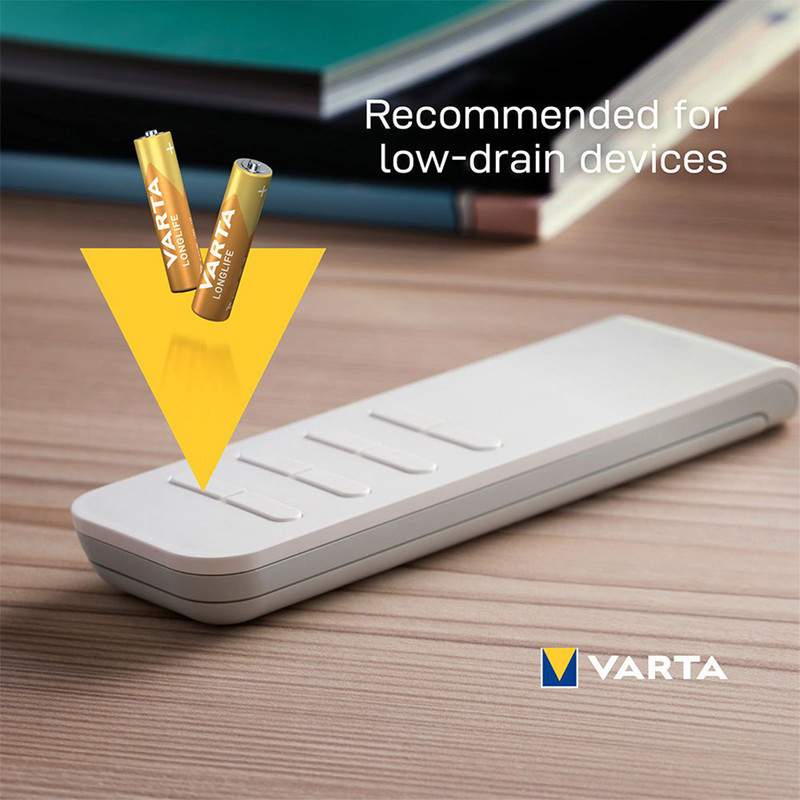 باتری نیم قلمی آلکالاین وارتا Longlife از با کیفیت ترین باتری های قابل استفاده در دستگاه هایی است که ساخت کشور آلمان می باشد. این باتری که در بسته 4 عددی ارائه بازار می شود، ساخت برند وارتا کشور آلمان است. از باتری نیم قلمی لانگ لایف Varta را میتوان در ریموت کنترل ها یا به عنوان باتری رادیو و باتری ساعت دیواری مورد استفاده قرار داد.با توجه به تناسب قیمت باتری نیم قلمی Longlife در مقایسه با عملکرد و طول عمر آن، با خرید باتری های نیم قلمی لانگ لایف علاوه بر صرفه جویی و کاهش هزینه های خرید مجدد باتری، با برطرف کردن سولفاته شدن باتری، افزایش طول عمر دستگاه و قطعات آن را نیز به همراه دارد.ویژگی بسته بندی باتری های وارتا با قابلیت خروج تک تک از بسته بندی، از آسیب دیدن باتری با باز شدن بسته بندی جلوگیری کرده و طول عمر باتری پیش از استفاده را افزایش خواهد داد.آیکون های کاربردی و قابل فهم درج شده روی بسته بندی باتری وارتا شامل اطلاعاتی مانند ساختار شیمیایی، اندازه، تاریخ انقضا و موارد استفاده از باتری می باشد که مصرف کنندگان قادر است با مشاهده آنها اطلاعات لازم در خصوص باتری را کسب کنند.