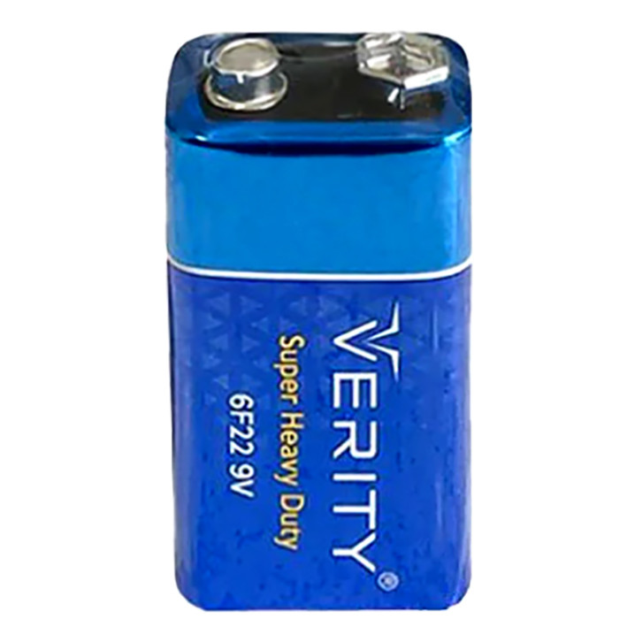 باتری 9 ولت وریتی مدل Super Heavy Duty 6F22 با تکنولوژی زینک – کربن تولید شده و به همین دلیل جزء باتری های کتابی اقتصادی محسوب می شود؛ این نوع باتری ها با ولتاژ 9 ولت قابلیت شارژ مجدد ندارند و فاقد جیوه هستند.
