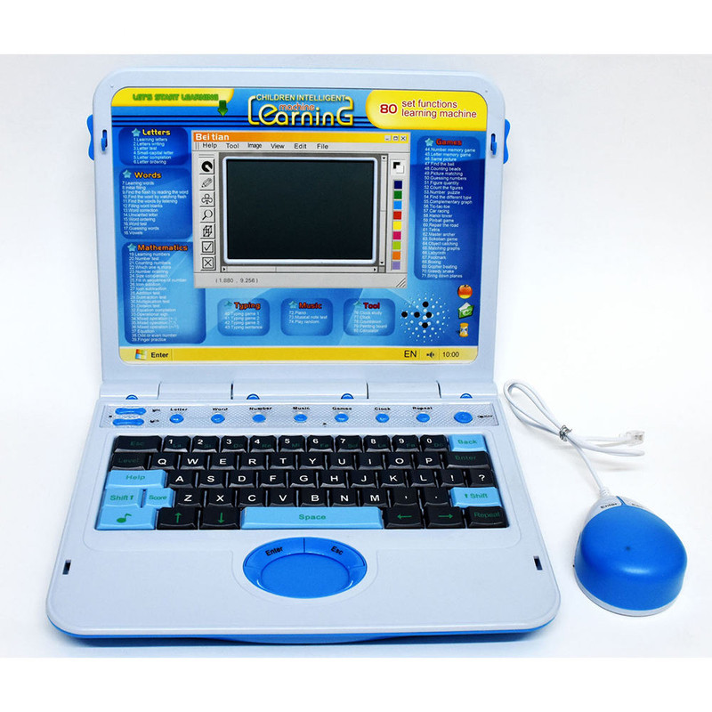 لپ تاپ آموزشی هشتاد کاره یک وسیله ی کمک آموزشی مناسب برای کودکان می باشد. در این لپ تاپ 80 برنامه ی کاربردی هدفمند طراحی شده است که کودک ضمن یادگیری و بازی با برنامه ها با کلید ها و فضای یک لپ تاپ واقعی نیز آشنا می شود. این لپ تاپ تماما انگلیسی بوده و اصلا زبان فارسی در آن استفاده نشده است. تصاویر روی صفحه ی نمایش نیز بصورت سیاه - سفید می باشد. صدای لپ تاپ با دکمه vol کم و زیاد شده و نور صفحه نیز توسط کلید LCD قابل تنظیم می باشد. موس از طریق سیم به لپ تاپ متصل شده و روی آن دو کلیدEnter و Esc قرار دارد که می توان از آنها استفاده کرد. برای باز کردن لپ تاپ دو کلید کناری را به جلو بکشید تا لپ تاپ باز شود و نیاز به 3 باطری 1.5v دارد. برای انتخاب برنامه ها کافی است شماره ی برنامه را وارد کنید و سپس کلید Enter را بفشارید. برای خروج از برنامه هم کلید Esp را بزنید.
