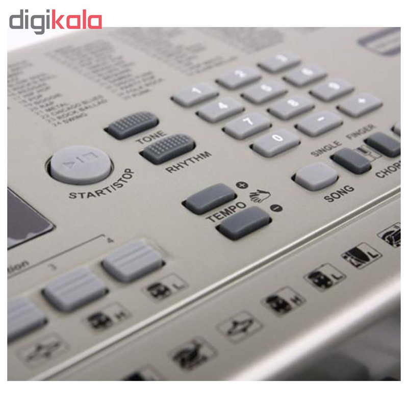 | سایر توضیحات | - دارای 54 کلید بر کیبورد - قابلیت پخش موزیک MP3 - قابلیت پخش USB - دارای میکروفن -دارای افکت برای موزیک - دارای 100 تن - 100 ریتم - 10 دمو - دارای برنامه و قابلیت ضبط موسیقی - دارای برنامه برای آموزشی - دارای تمپو - قابلیت کم و زیاد کردن صدا - دارای صفحه نمایش بر روی کیبورد - قابلیت استفاده به دو صورت باطری و برق - 6 باطری قلمی 1.5 ولتی - عدم وجود باطری در مجموعه - مناسب برای کودکان بالای 3 سال |