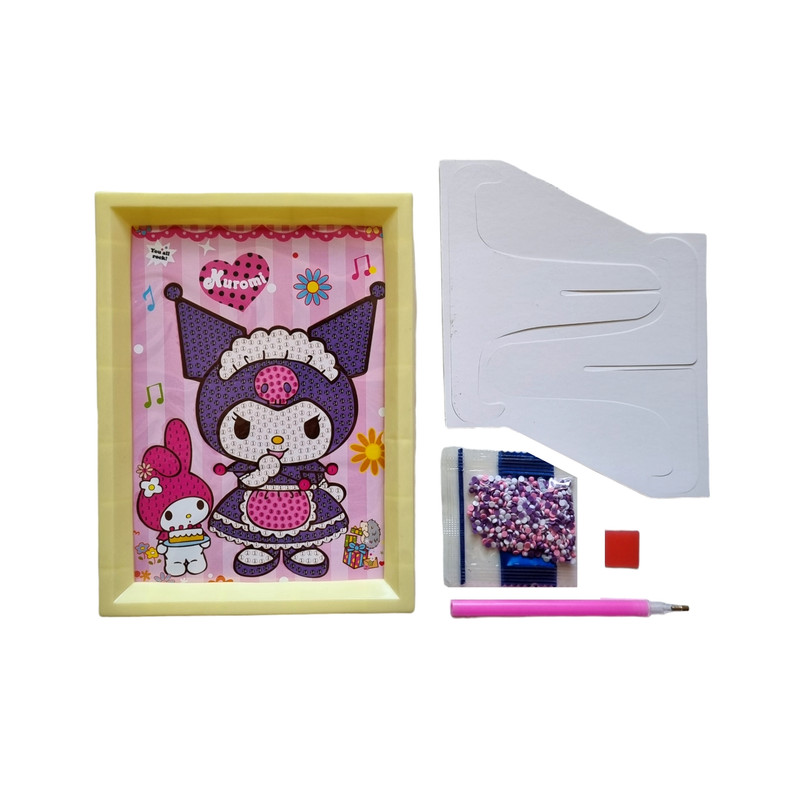 | اقلام همراه | پک نقاشی الماسی شامل یک صفحه مقوایی طرح دار، قاب، نگین یا الماس، چسب مخصوص، پایه کاغذی و قلم است |