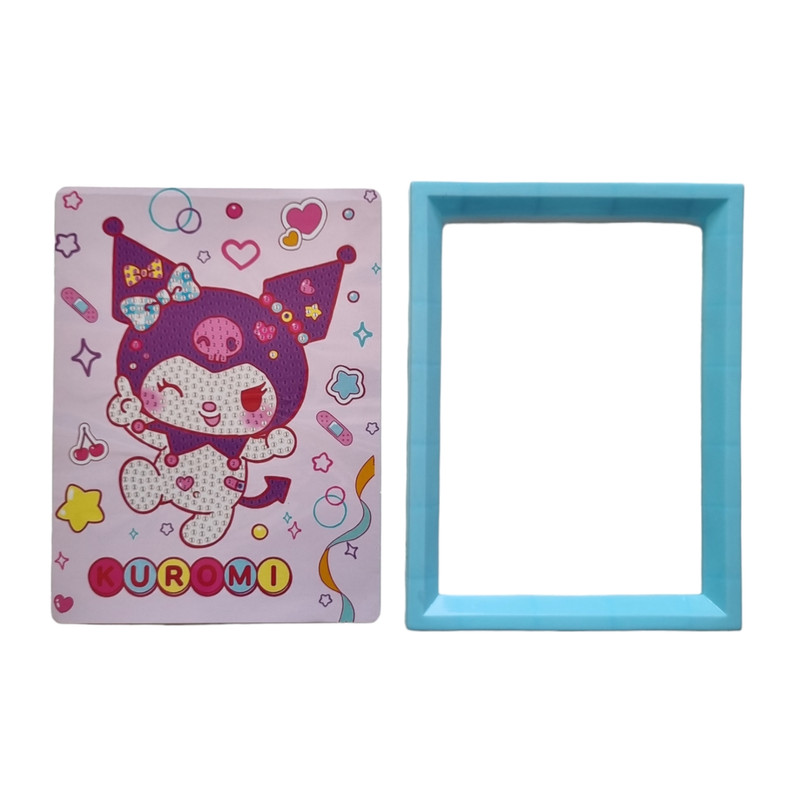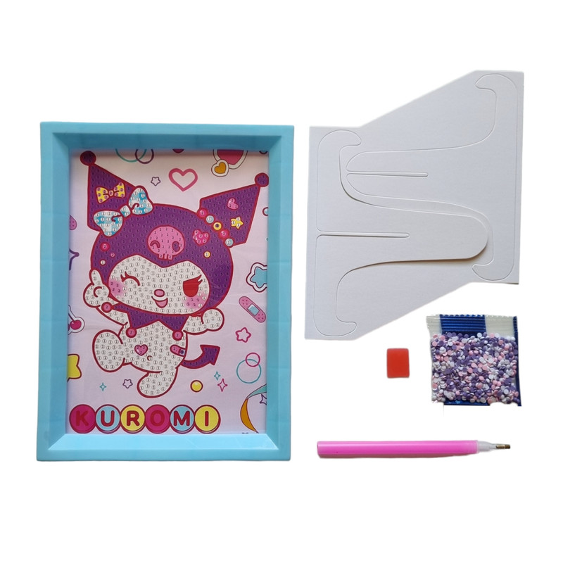 | اقلام همراه | پک نقاشی الماسی شامل یک صفحه مقوایی طرح دار، قاب، نگین یا الماس، چسب مخصوص، پایه کاغذی و قلم است |
