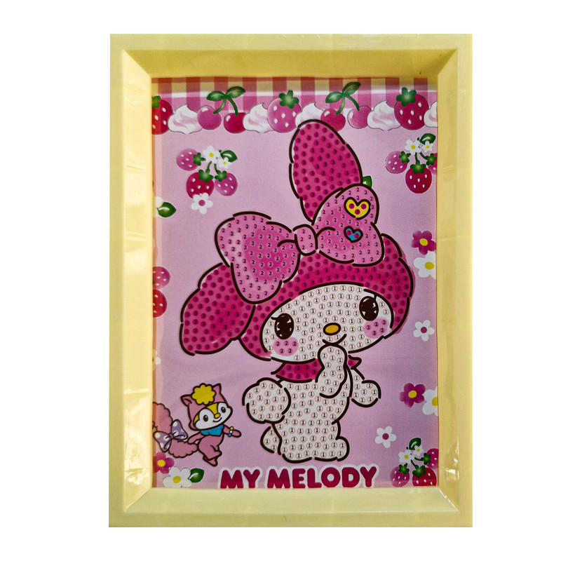 | اقلام همراه | پک نقاشی الماسی شامل یک صفحه مقوایی طرح دار، قاب، نگین یا الماس، چسب مخصوص، پایه کاغذی و قلم است |