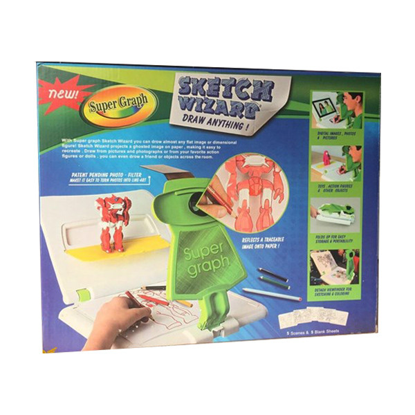 سوپرگراف یک دستگاه جادویی جذاب باکارایی بسیار بالاجهت اموزش ویادگیری نقاشی و طراحی برای بچه های۵سال به بالاست. سوپرگراف ازبهترین مواداولیه پلیمری ABS ساخته شده و بسیار محکم و ماندگار می باشد.داخل بسته بندی یک بسته مدادرنگی ،یک عدد مدادمخصوص نقاشی وطراحی، سه عددبروشورکامل جهت راهنمایی کار بادستگاه به سه زبان فارسی،عربی،انگلیسی ،پنج عددتصاویر اماده شده جهت اموزش اولیه و پنج عددکاغذA4 جهت شروع به کار قرار داده شده است. بااطمینان میتوان گفت که سوپرگراف تنهادستگاهی است که هم برای اموزش ویادگیری نقاشی وطراحی وهم یک اسباب بازی فوق العاده جذاب برای بچه هامحسوب میشود.