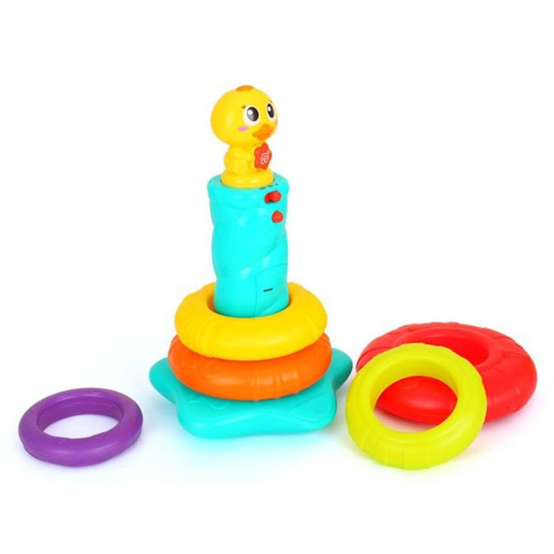حلقه هوش موزیکال از 5 حلقه رنگی با رنگهای شاد و اندازه های متفاوت تشکیل شده که کودک را با رنگ ها و اندازه ها آشنا می کند و می تواند حلقه ها را به ترتیب اندازه بر روی هم قرار دهد. این اسباب بازی از پلاستیک نشکن و با کیفیت ABS تولید شده و برای کودکان کاملا ایمن است. برای پخش موسیقی می باشد