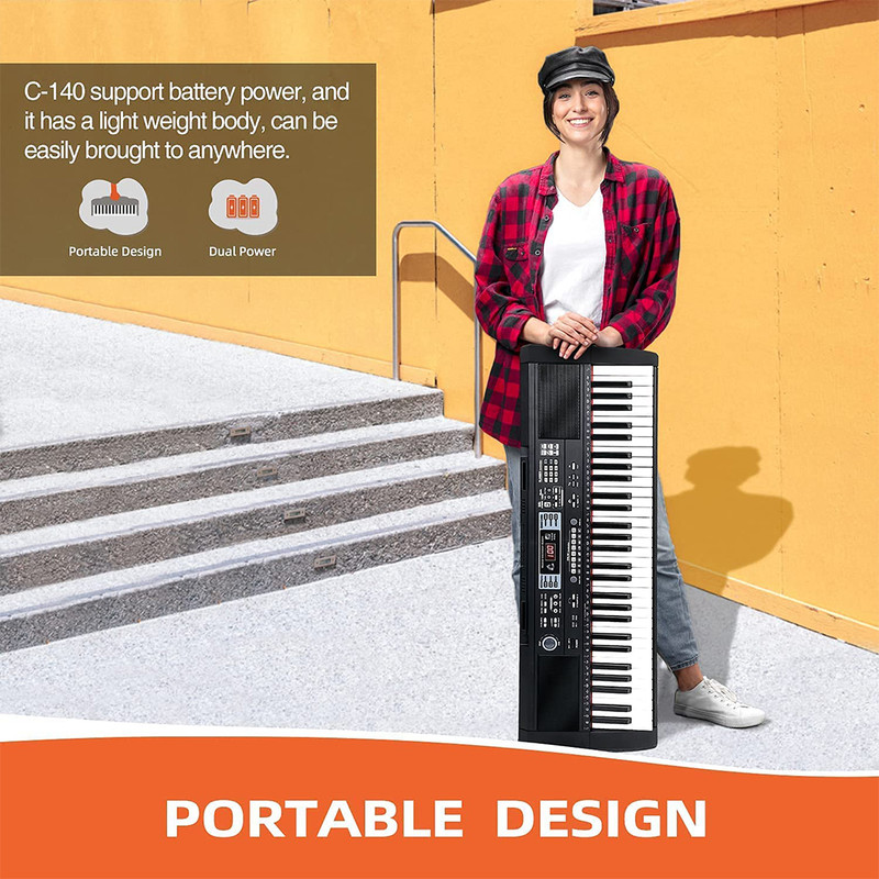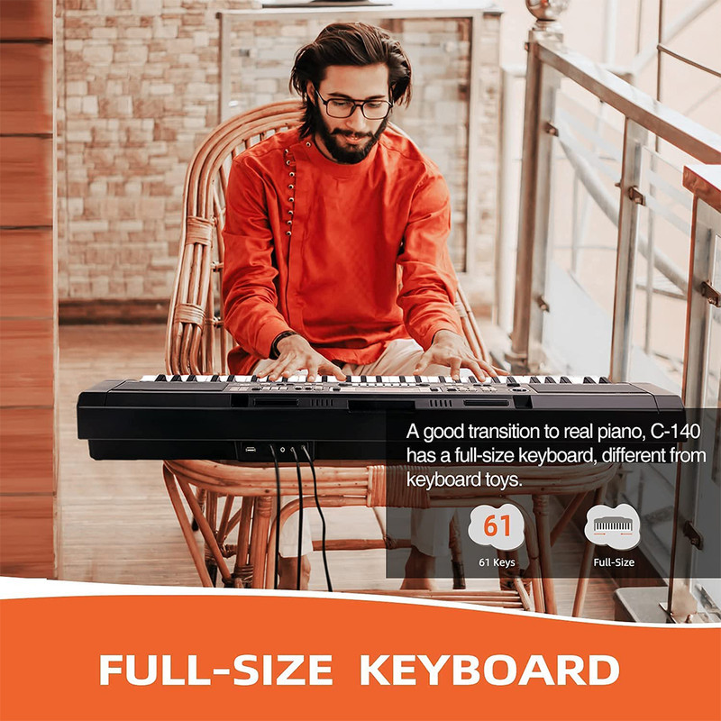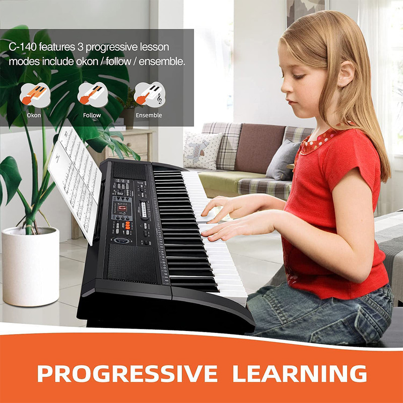 همه چیز مورد نیاز شما را دارد - 3 حالت یادگیری پیشرونده، عملکرد جداسازی صفحه کلید، قدرت دوگانه، 60 کتابخانه نمایشی داخلی، 150 ریتم، 200 تن، 11 ساز کوبه ای و کنترل صدا یا سرعت. در مجموع، C-140 یک پلت فرم ایده آل برای مبتدیان است، دارای کلیدهای پیانو با اندازه استاندارد است که آن را تبدیل به یک پیانوی واقعی می کند.