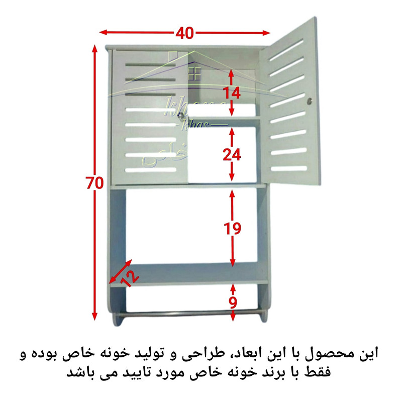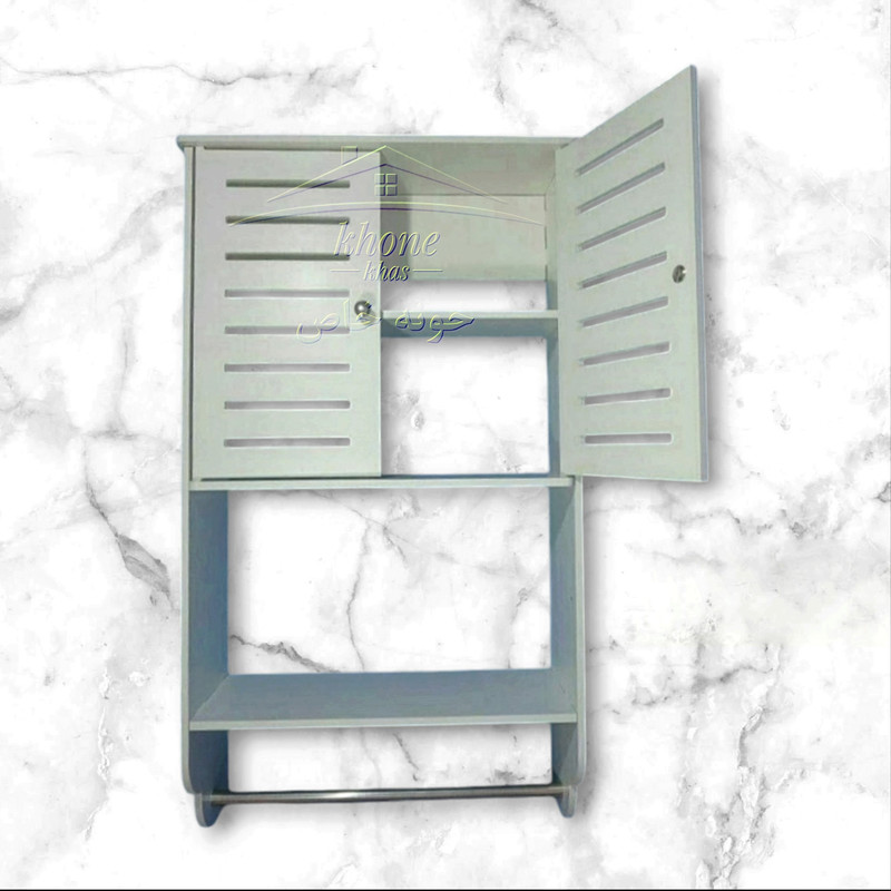 باکس دیواری سرویس بهداشتی محصول ایرانی خونه خاص بوده که از ورق درجه یک پی وی سی با کیفیت برش عالی ساخته شده است. این محصول مناسب سرویس بهداشتی، حمام، اتاق خواب، و آشپزخانه جهت قراردادن لوازم آرایشی و بهداشتی یا سایر اقلام می باشد. درقسمت بالا باکس درب دار دو طبقه و در قسمت پایینی طاقچه جاداری به همراه میله استیل جهت آویزان کردن حوله یا سایر لوازم تعبیه شده است. سایز محصول بسیار بزرگ و کاملا کاربردی می باشد. بدنه ی PVC این محصول دارای خاصیت ضد آب و استحکام بسیار بالایی می باشد و از این رو شما می توانید بدون نگرانی از کاهش کیفیت محصول از آن در محیط های مرطوب، سرویس بهداشتی، حمام استفاده نمائید. این محصول فقط با برند خونه خاص عرضه می شود