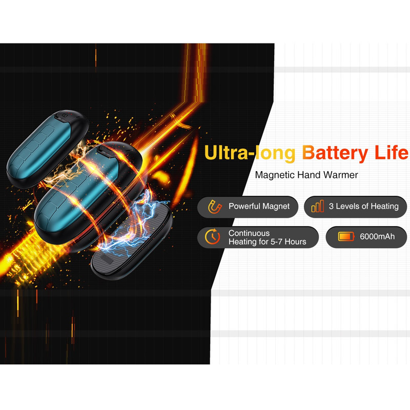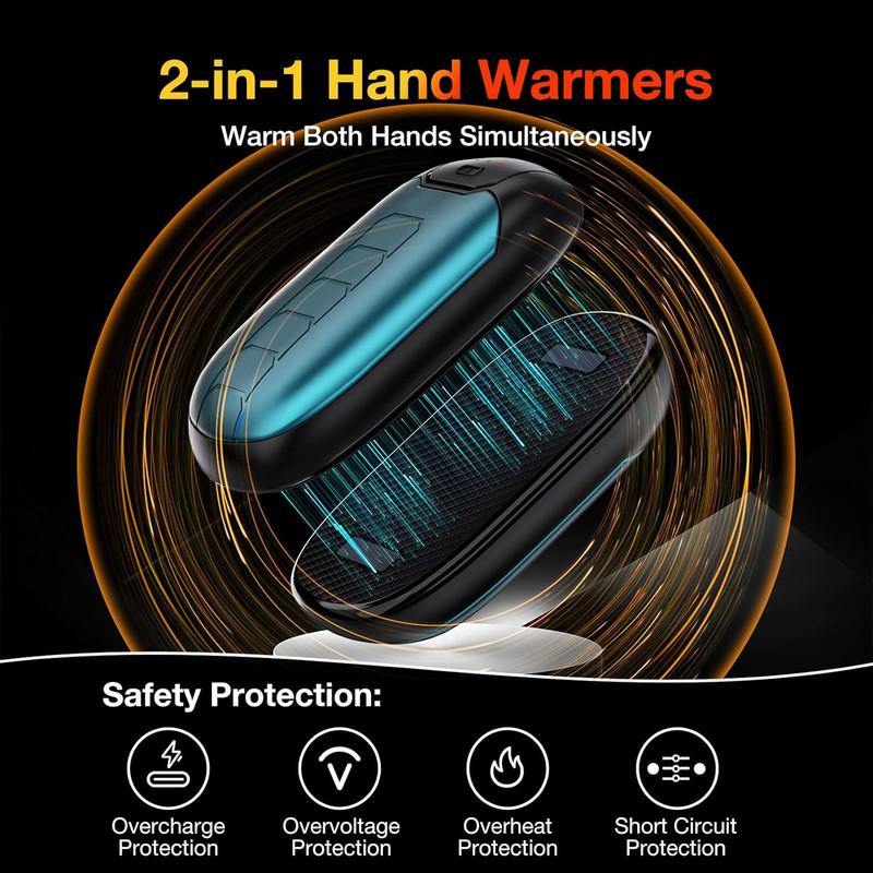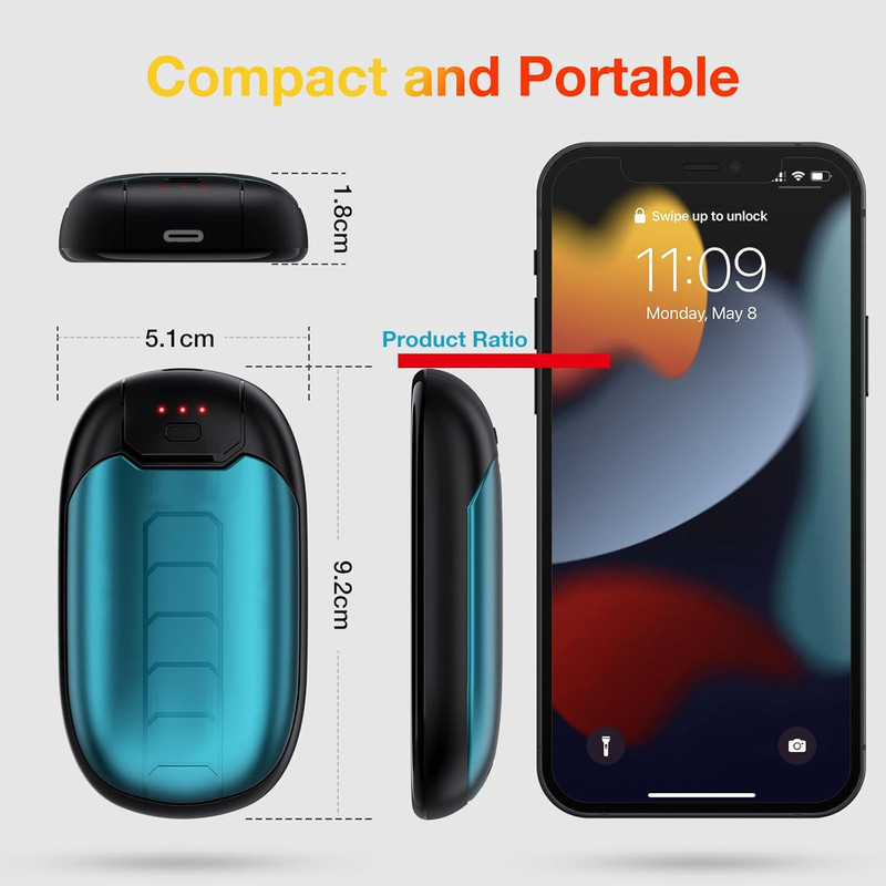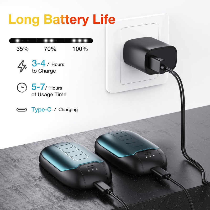 شارژ سریع، ظرفیت بزرگ: این دست گرمکن قابل شارژ USB دارای یک باتری لیتیومی قابل توجه 3000mAh*2 با درگاه USB-C برای استفاده طولانیتر است. با یک آداپتور 5V/2A و کابل شارژ دوگانه ما، 5-7 ساعت عمر باتری را فراهم می کند. هر دو دست گرم کننده می توانند تنها در 3-4 ساعت به طور کامل شارژ شوند. ایده آل برای فعالیت های خارج از منزل مانند فوتبال، انتظار اتوبوس مدرسه در هوای سرد، ماهیگیری، پیاده روی، کمپینگ، اسکی، مسافرت و پیاده روی با سگ.
