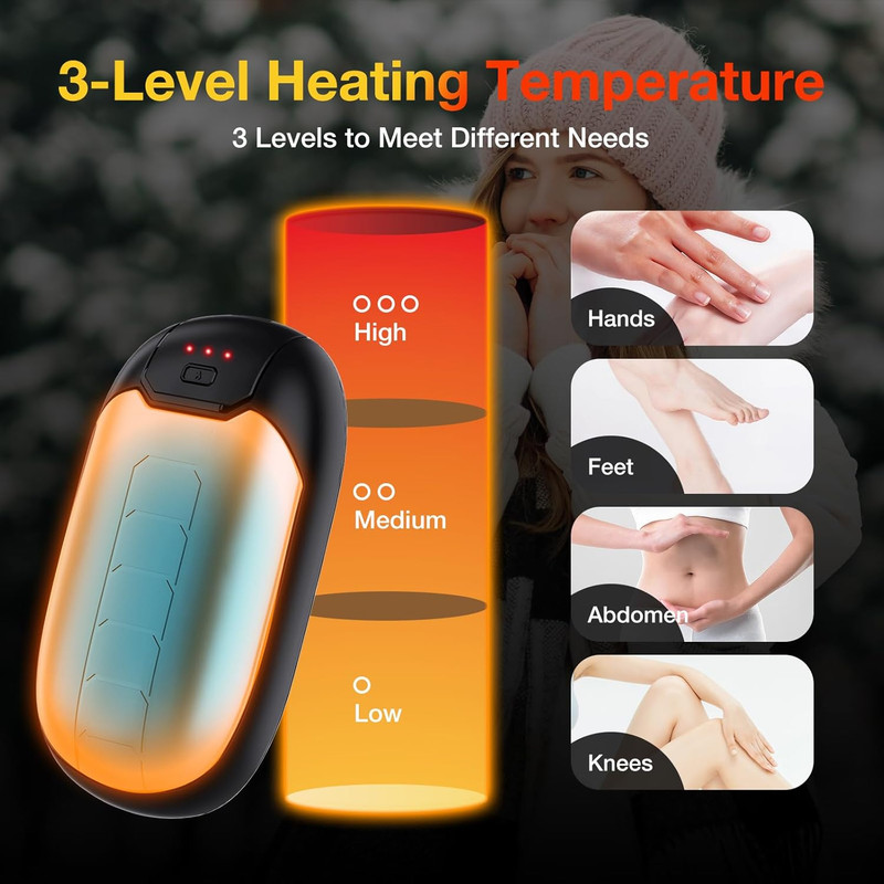 3 حالت گرمایش قابل تنظیم: ما از چیپست های درجه یک برای کنترل سطح گرمای گرمکن دستی استفاده می کنیم. از 111.2 درجه فارنهایت تا 123.8 درجه فارنهایت، 3 سطح گرما برای انتخاب وجود دارد، با یک دکمه ساده، به سرعت گرم می شود تا گرمای راحت ایجاد شود، نه آنقدر گرم که باعث ناراحتی نگه داشتن آن شود، اما نه آنقدر گرم که باعث بی فایده شدن آن شود، تعادل خوبی به دست آمده است. برای زنان، مردان، سالمندان مبتلا به آرتریت، رینود و آرتریت عالی است.