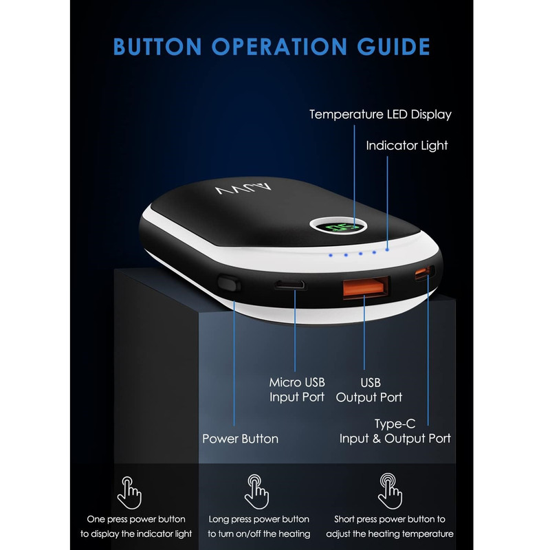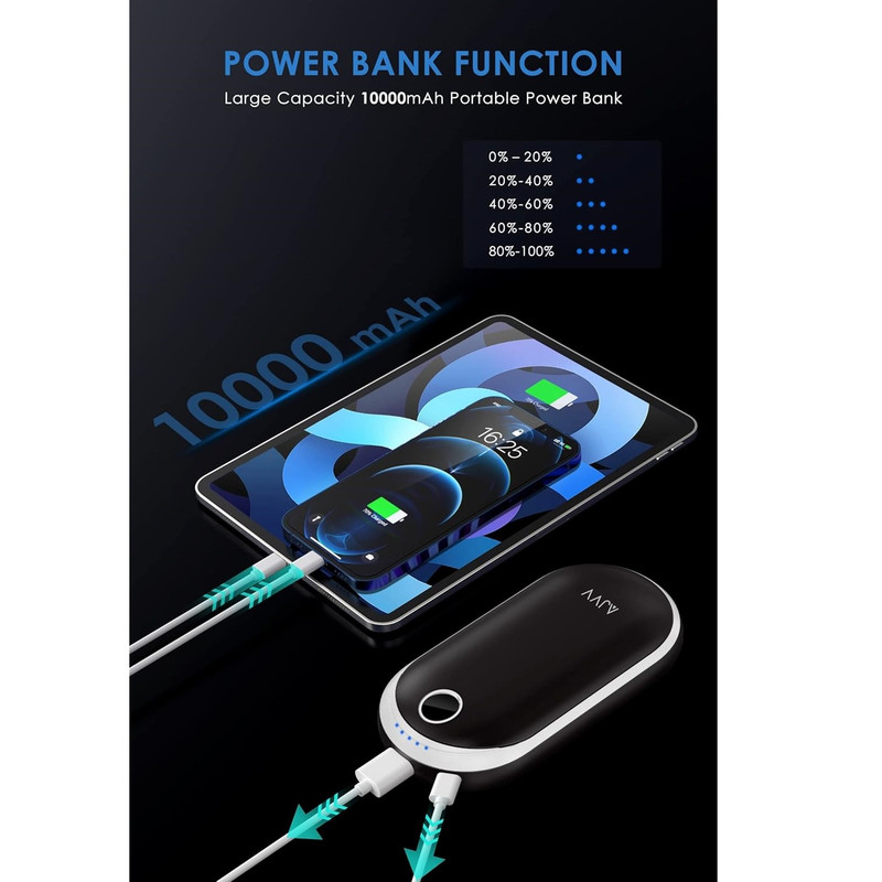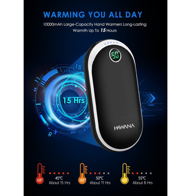 ویژگی هاگرمکن دستی، گرمکن دستی شارژی 10000 میلی آمپر ساعتی دست گرم کن برقی جیبی 3 سطح حرارتی/پاوربانک با گرمایش طولانی مدت و نمایشگر دیجیتال، هدیه برای بانوان/آقایان ورزش در فضای باز