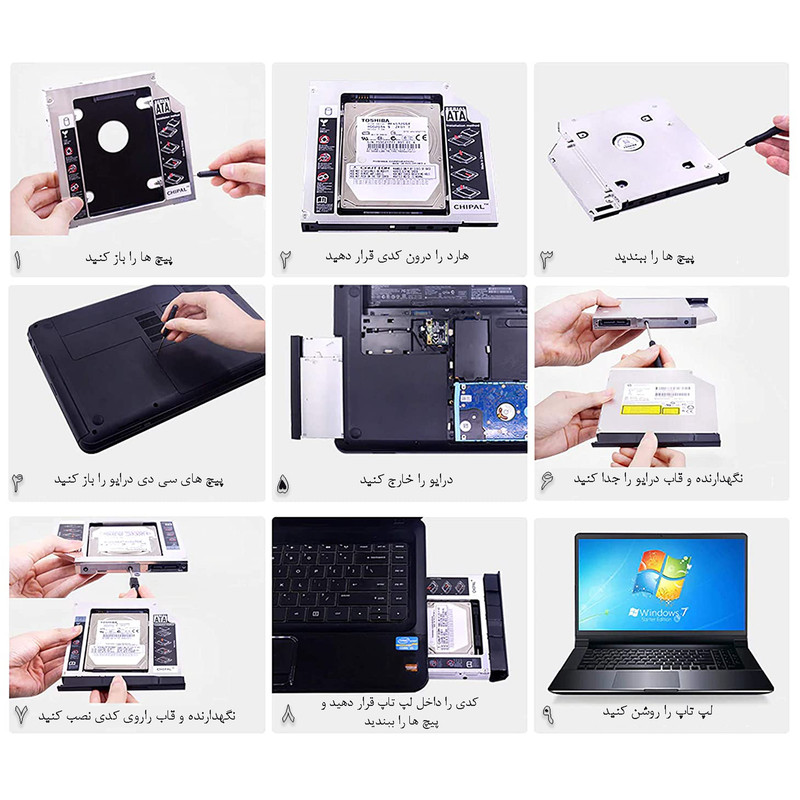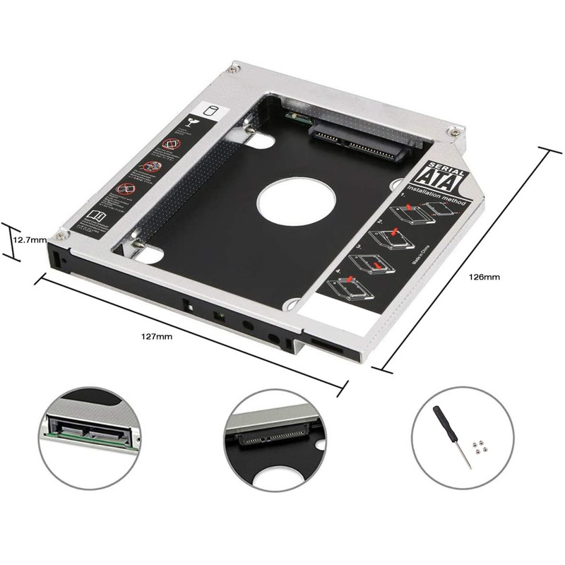 این محصول مناسب هاردهای 2.5 اینچی (هارد لپ تاپ) HDD و SSD است که جایگزین دی وی دی رایتر با ضخامت 12.7 میلیمتر می شود.