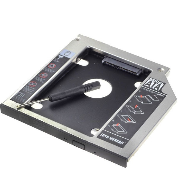 از آنجایی که SSD ها نسبت به هاردهای HDD گران بوده و فضای ذخیره محدودی را در اختیار شما قرار می دهند. بنابراین استفاده از تبدیل کدی راهکار مناسبی برای این معضل می باشد. شما می توانید هارد SSD را به جای هارد اولیه لپ تاپ قرار داده و سیستم عامل را روی آن نصب کنید، آنگاه هارد HDD را درون کدی قرار دهید و به جای درایو نوری درون لپ تاپ بگذارید.این مبدل برای هاردهای ساتا به کار می رود اگر لپ تاپ شما قدیمی است و برای اطمینان از اینکه برای لپ تاپ شما مناسب است یا نه پس از باز کردن دی وی دی رایتر می توانید توسط شکل زیر تشخیص دهید که از کدام نوع است.با این روش نصب به علت ارتقا لپ تاپ بوسیله SSD و انعطاف پذیری ذخیره سازی توسط کدی و هارد HDD، از سرعت بالا و حجم کافی برخوردار خواهید بود. نصب کدی و هارد دوم کار ساده ای است که اغلب می تواند در مدت ده دقیقه صورت گیرد.