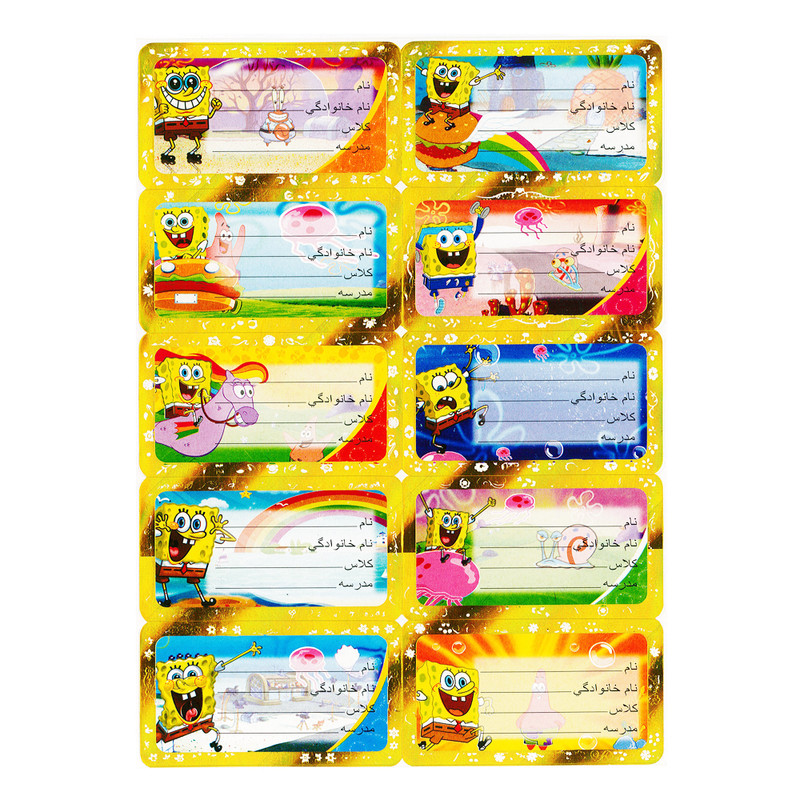 برچسب طرح اسم و کلاس مدل باب اسفنجی کد 6 بسته 2 عددی