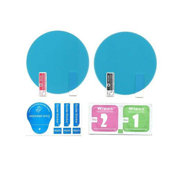 یک محصول مناسب جهت همه خودروها که قابلیت چسباندن بر روی شیشه و آینه را دارا می باشد. شفاف و بیرنگ بوده و در سایزهای مختلف ارائه می گردد. این محصول از نوع دایره بوده و در ابعاد 80میلیمتر در 80 میلیمتر ساخته شده است. دارای پوشش نانو بوده که سطح را به صورت آبگریز (هیدروفوبیک) تبدیل می کند. این سطوح آب را بر روی خود نگه نمیدارند و هر قطره آبی از روی سطوح لیز می خورد. در صورتیکه پس از نصب بر روی محصول گرد و غبار و یا گل نشست فقط با آب براحتی می توان آنرا بدون نیاز به هیچ گونه پارچه ای پاک نمود. در صورت لزوم برای پاک کردن این محصول از دستمال نرمی که داخل بسته گذاشته شده است و یا دستمال عینک استفاده کنید. این محصول برای کلیه خودروها قابل استفاده می باشد