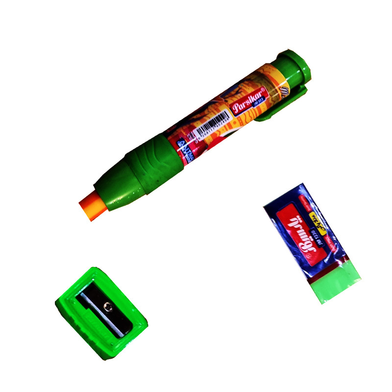 | محتویات بسته | مداد نوکی , پاک کن , تراش , ماژیک , الگو , خطکش , چسب |
