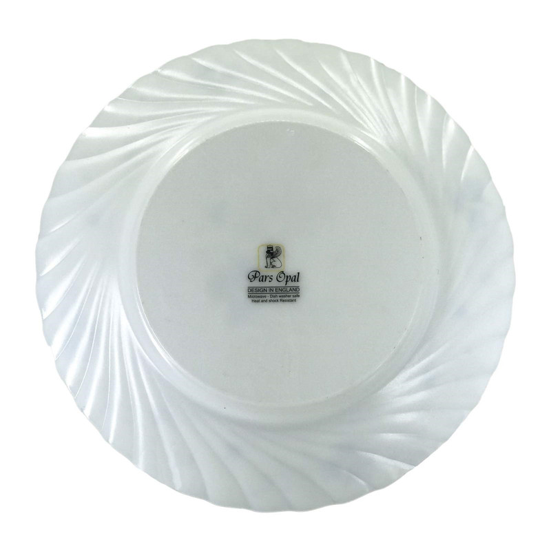 بشقاب پلو خوری 6 پارچه برند پارس اوپال مدل رمانتیک با نواری از گلهای آبی و شاخ و برگهایی خاکستری که دور تا دور ظرف را پوشانده به همراه قالب زیبای آن ، یک گذینه مناسب برای پزیرایی از میهمانان گرامیتان را فراهم می آورد . برند پارس اوپال اولین تولید کننده ظروف اوپال در ایران میباشد .