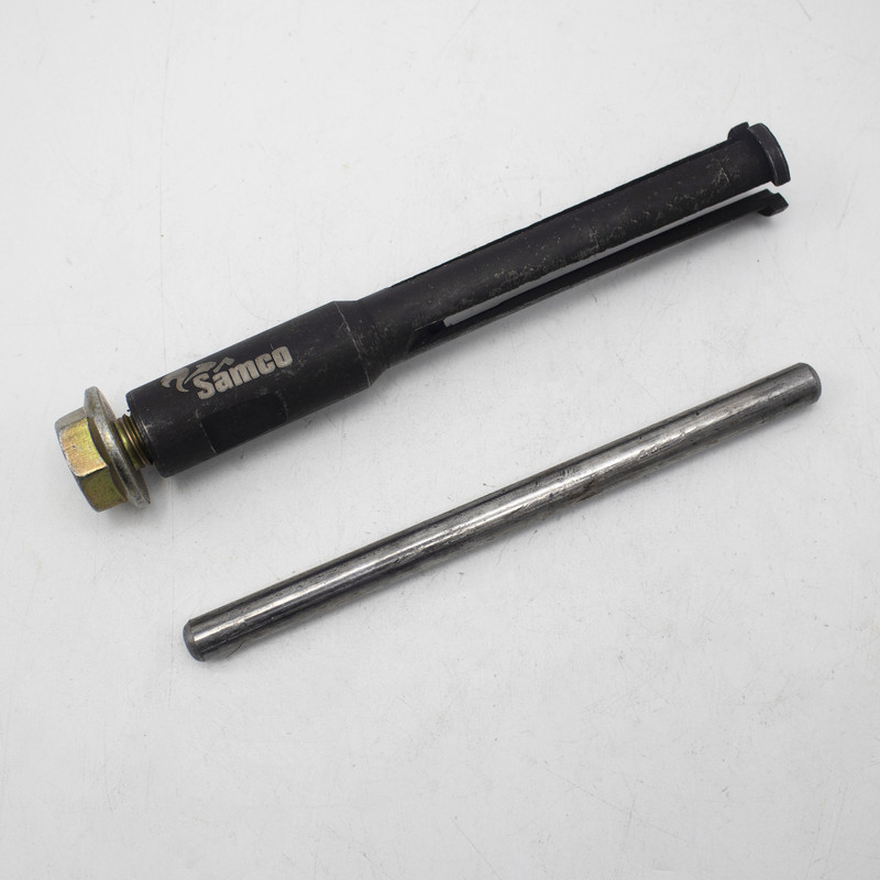 محصول فوق بلبرینگ کش ته میل لنگ سامکو مناسب برای کلیه خودروها میباشد و به این صورت عمل میکند که به صورت جمع شده از انتهای ابزار داخل میل لنگ خودرو رفته و با درآوردن پیم آن شاخک های انتهایی بلبرینگ را گرفته و با بستن پیچ آن بلبرینگ را به راحتی در میارود این محصول از آلیاژ مقاوم CK45 ساخته شده آلیاژ CK45 به دلیل آنکه تحت حرارت بیشتری قرار میگیرد مقاوم تر از فولاد معمولی میباشد.