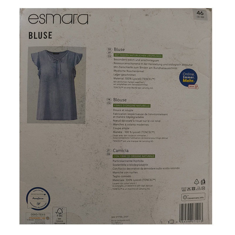 بلوز زنانه اسمارا آمیخته ای از 100 درصد لایوسل می باشد و چون بر چسب کیفیت دارد هیچگونه حساسیتی ایجاد نمی کند. لازم به توضیح است سایزبندی این لباس بر اساس سایزهای اروپایی یورو ( EUR ) می باشد و نوع استایل اصلی در عکس ها نشات دهنده جذب یا آزاد و یا بلند و کوتاه بودن لباس است . در کل سایز لباس های ایرانی نسبت به سایزهای آلمانی ( EUR ) در اکثر مواقع یکی نیست. به طور کلی برای انتخاب لباس آلمانی شما باید یک سایز از سایز لباس ایرانی خود را کم کنید به عنوان مثال اگر در سایز ایرانی XL می پوشید باید در سایز آلمانی L را انتخاب کنید حتما جدول تبدیل سایزهای ایرانی به آلمانی را در قسمت عکسها مطالعه بفرمایید...لطفا با رنگهای مشابه بشویید و از مواد شوینده رنگی استفاده کنید .