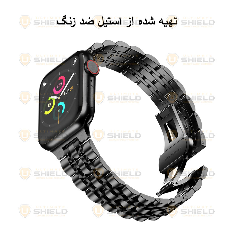 | توضیحات | با دوام - از جنس استیل ضد زنگ - ظاهری شیک و مدرن - مقاوم برابر سایش و آسیب - قابلیت تنظیم - قفل مطمئن - اتصال محکم و ایمن به بدنهی اپل واچ - مناسب برای استفاده روزمره |