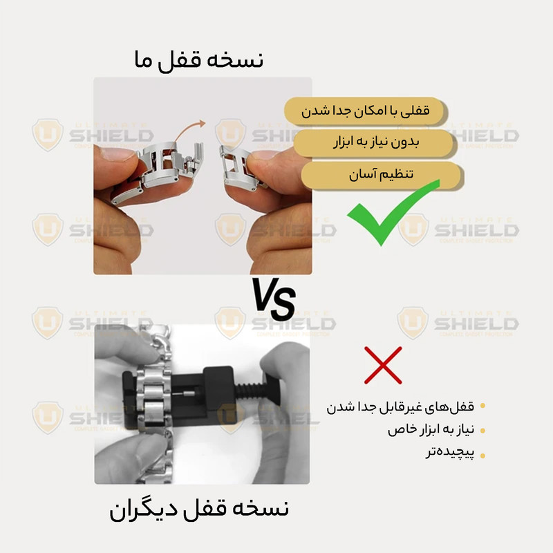 | توضیحات | ضدحساسیت - تهیه شده از فلز با کیفیت و بادوام - ثبات رنگ - قابلیت تنظیم برای انواع مچ بدون نیاز به ابزار |