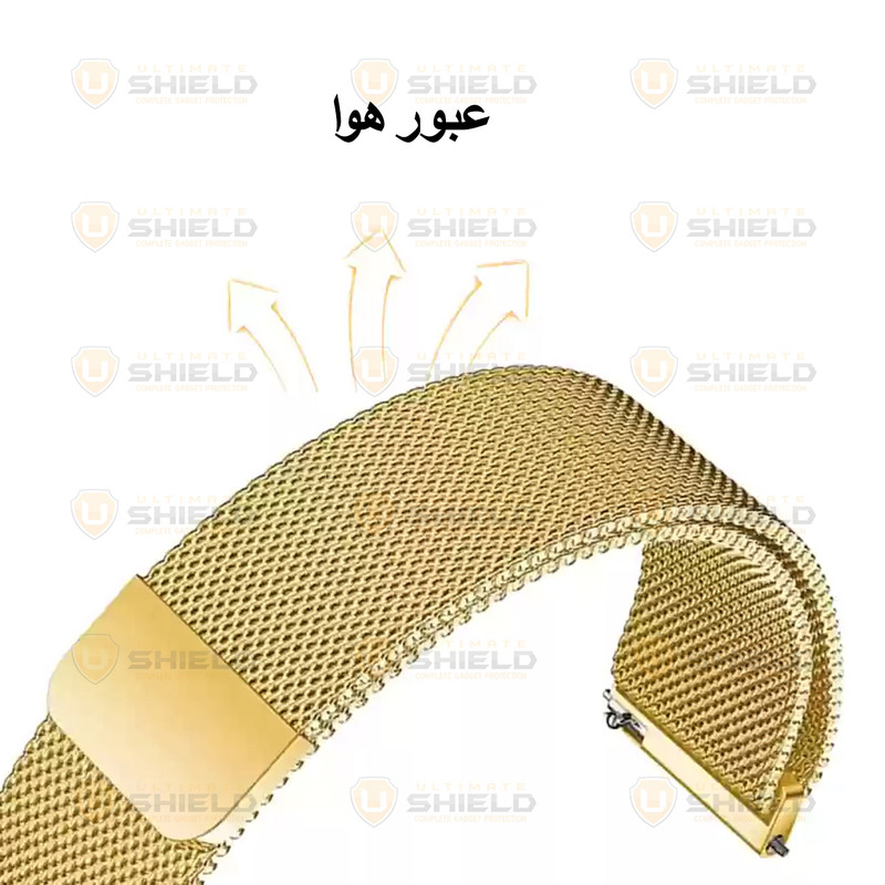 بند ساعت هوشمند میلانس، با طراحی بافت فلزی ظریف و باکیفیت است که از جنس استیل ضدزنگ 316L ساخته شده و دوام بالایی دارد. این بند با قفل مغناطیسی قابل تنظیم، به راحتی روی مچ دست قرار میگیرد. همچنین طراحی بافت فلزی این بند قابلیت عبور هوا را فراهم میکند و از تعریق بیش از حد جلوگیری مینماید، که آن را برای استفاده طولانیمدت بسیار راحت میکند. همچنین، رنگ آن کیفیت ثابتی دارد و در برابر محو شدن یا تغییر رنگ مقاوم است. طراحی شیک و مدرن این بند علاوه بر زیبایی، راحتی و ایمنی را نیز برای کاربران فراهم میکند و به دلیل مقاومت بالا در برابر زنگزدگی و خوردگی، گزینهای ایدهآل برای استفاده روزمره است.