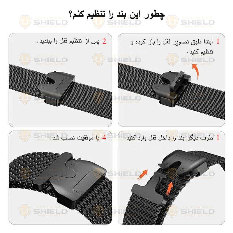 توضیحات طراحی به‌روز و مدرن - جایگزین نسخه‌های قدیمی - سیستم قفل چفت‌شونده- امنیت بالا - مناسب برای فعالیت‌های روزمره یا ورزشی - از جنس مش فولادی یا تیتانیومی - بسیار سبک و راحت - حفظ رنگ و جنس بادوام