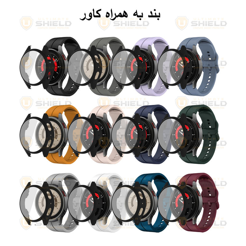 بند سیلیکونی مخصوص ساعتهای هوشمند سامسونگ، یک محصول باکیفیت، سبک و انعطافپذیر است که برای استفاده روزمره و فعالیتهای ورزشی ایدهآل میباشد. این بند با طراحی ارگونومیک، بهراحتی روی مچ قرار میگیرد و احساس راحتی را در طول استفاده فراهم میکند. علاوه بر بند، یک کاور از جنس پلی کربنات به همراه محافظ صفحهنمایش نیز همراه این مجموعه ارائه میشود که از ساعت شما در برابر خط و خش، ضربه و گردوغبار محافظت میکند. کاور دارای طراحی دقیق است که بهطور کامل با نمایشگر ساعت سازگار بوده و تأثیری بر عملکرد لمسی آن ندارد. این مجموعه با تغییر استایل و ظاهر ساعت شما، جلوهای جدید و منحصربهفرد به آن میبخشد و انتخابی عالی برای افرادی است که به زیبایی و محافظت همزمان از ساعت هوشمند خود اهمیت میدهند.