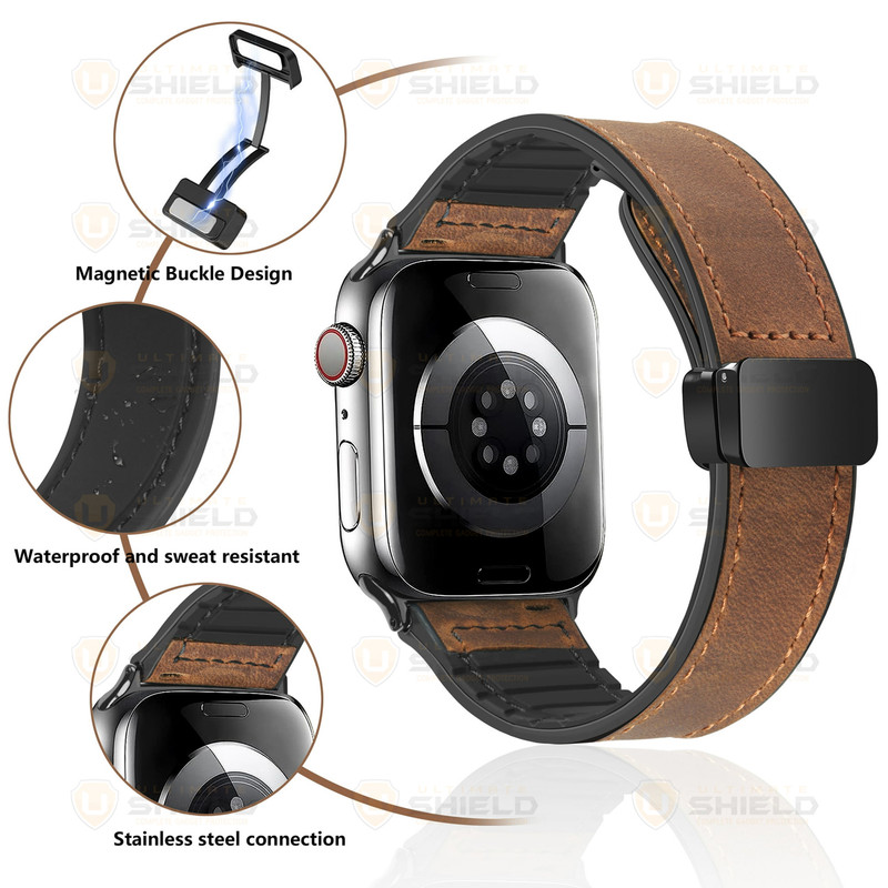 بند آلتیمیت شیلد مدل Smooth Leather Mag مناسب برای اپل واچ 40 میلی متری سری 4